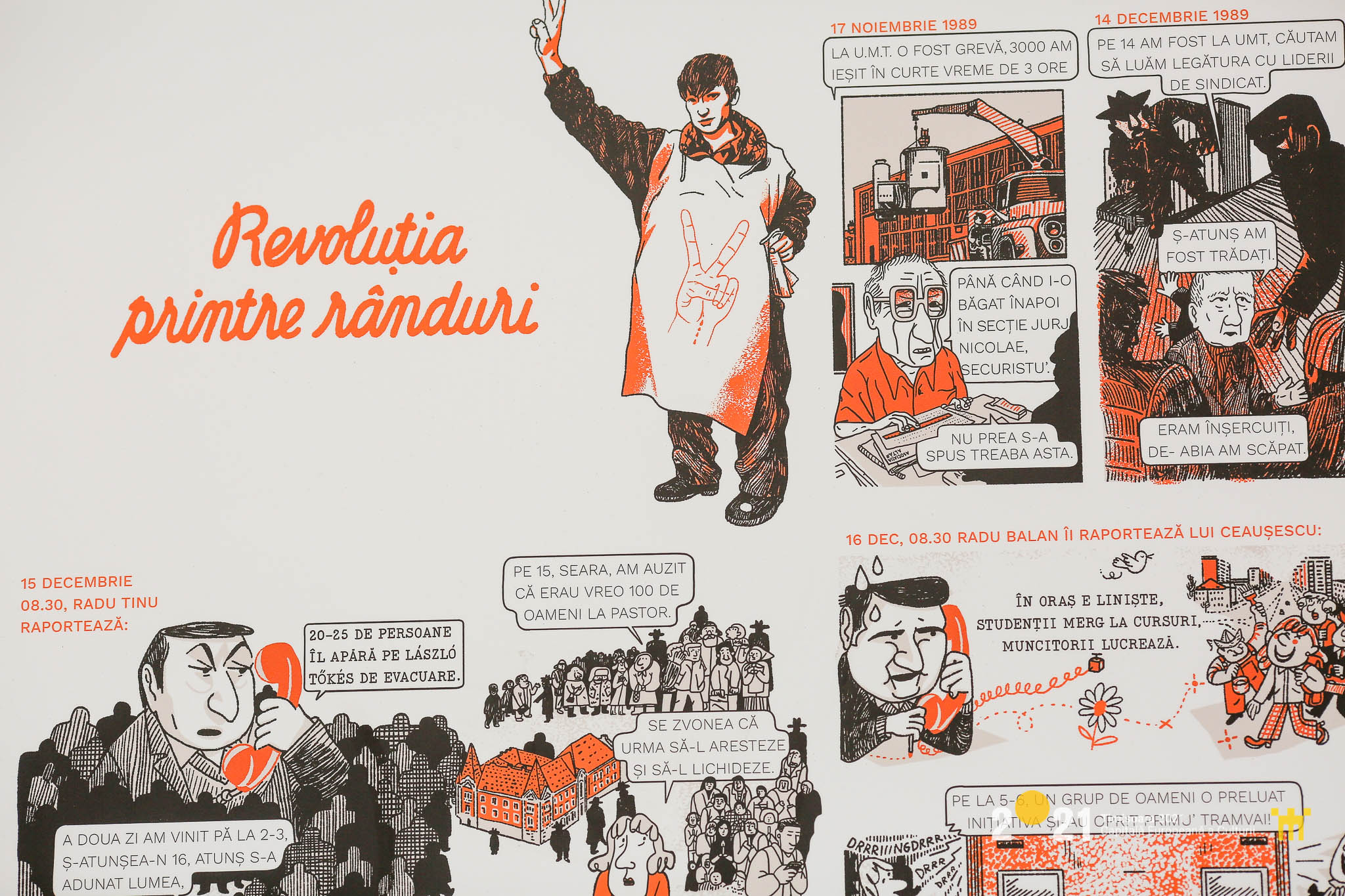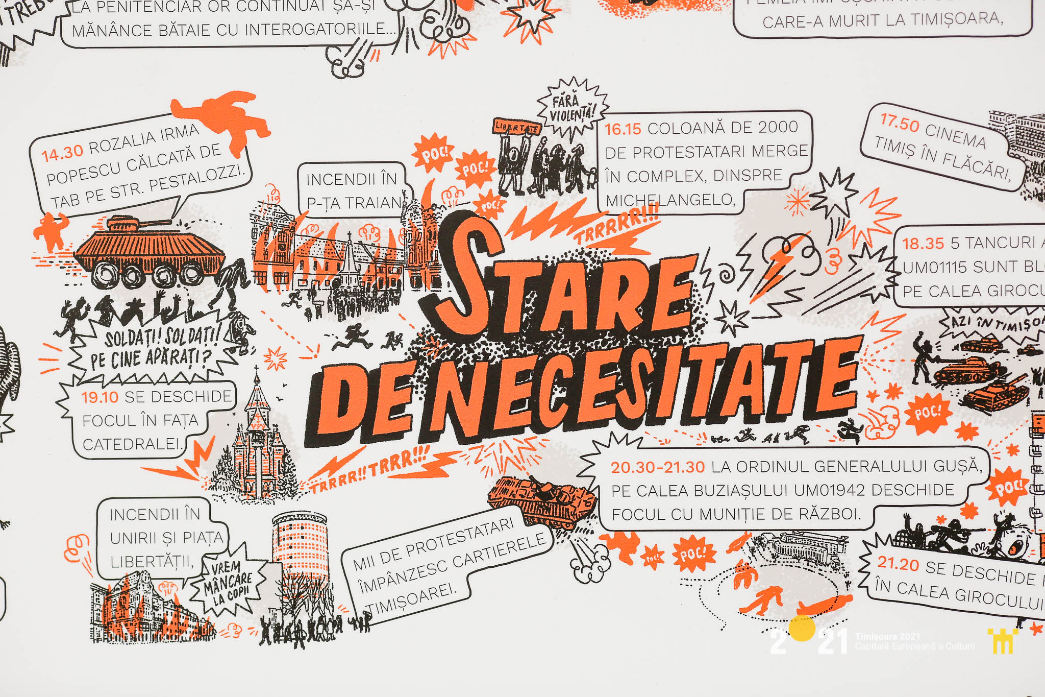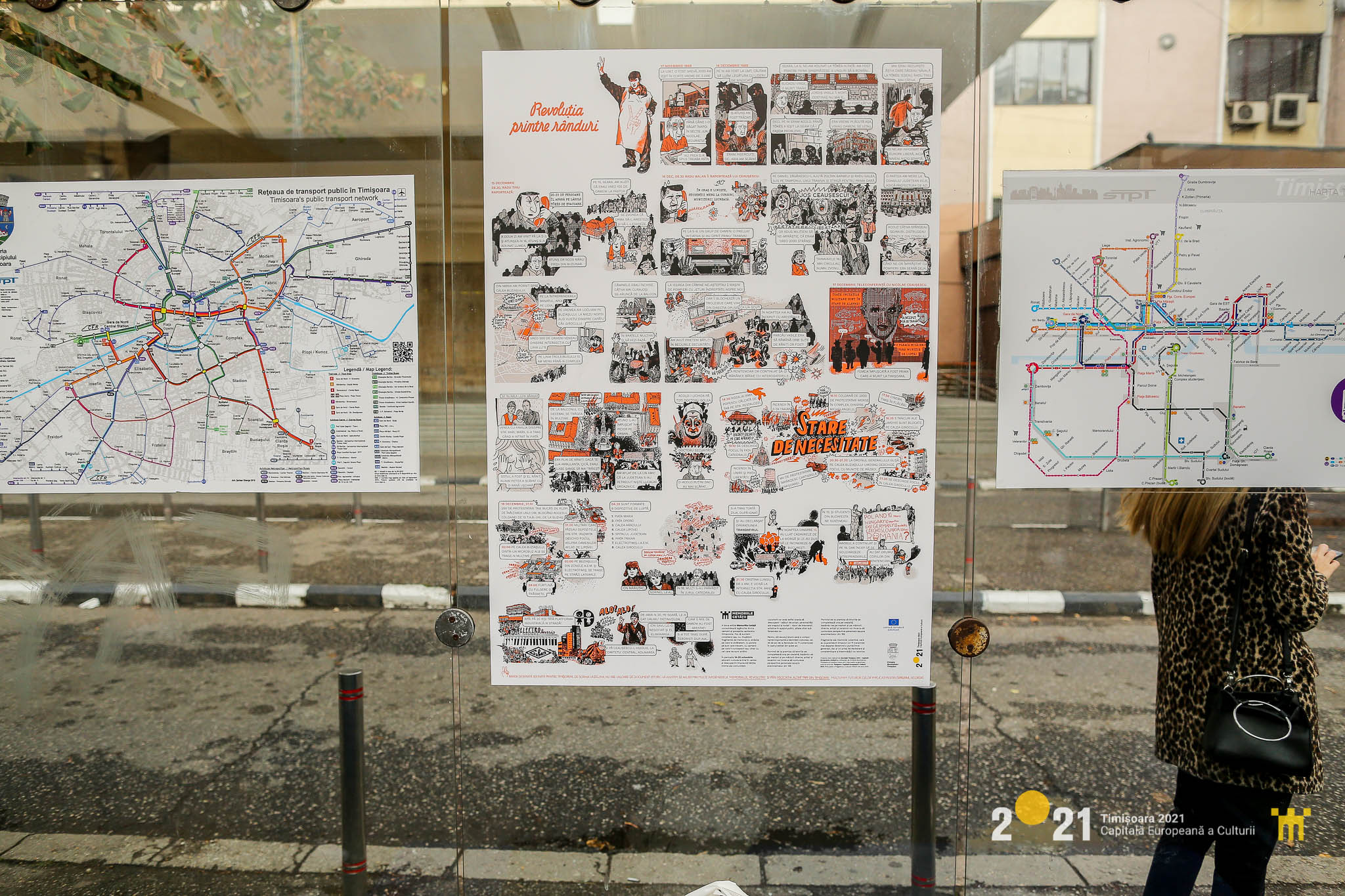Tot în cadrul aceluiaşi proiect, în 23 de staţii de tramvai sunt amplasate benzi desenate create de Sorina Vazelina, pentru a oferi o amintire a evenimentelor din decembrie 1989. Pasagerii care aşteaptă câteva minute în staţie pot citi poveşti adevărate din timpul Revoluţiei de acum 30 de ani.
