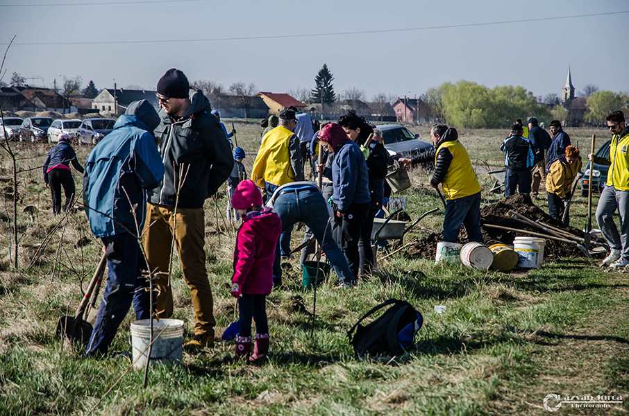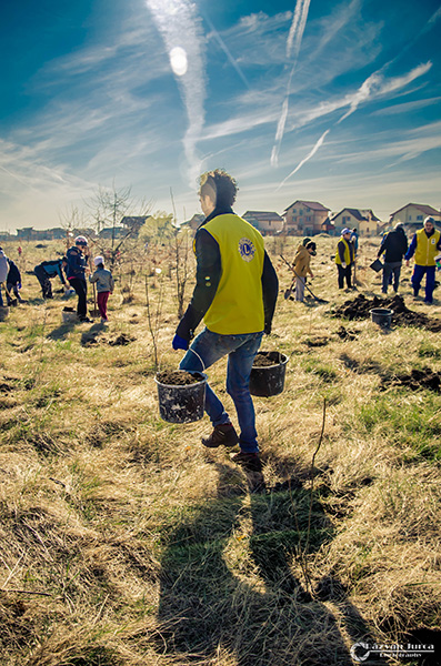 Aproape 100 de voluntar au plantat, sâmbătă, 2.400 de puieți de salcâm și plop într-o acțiune de împădurire organizată de clubul Lions Timișoara Bastion împreună cu Primăria Dudeștii Noi.
