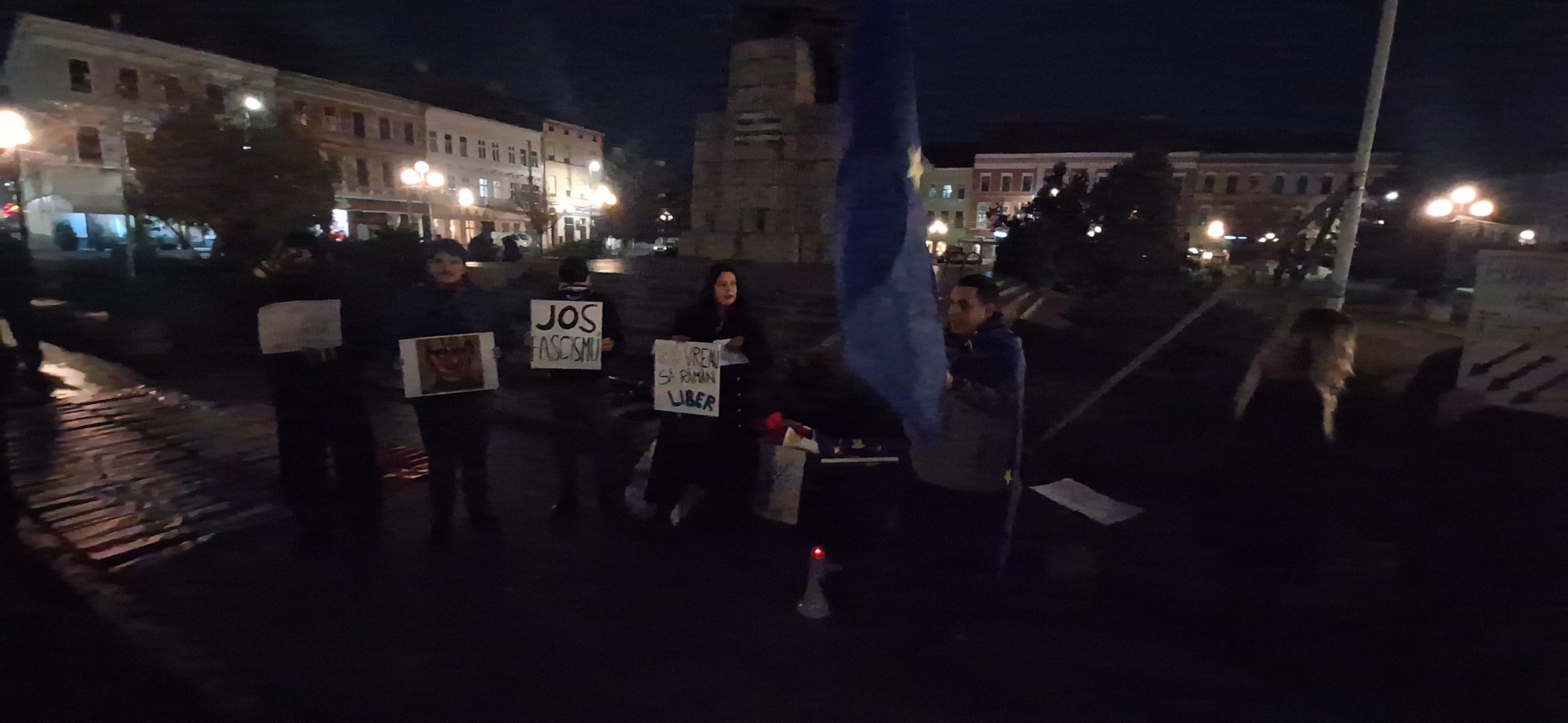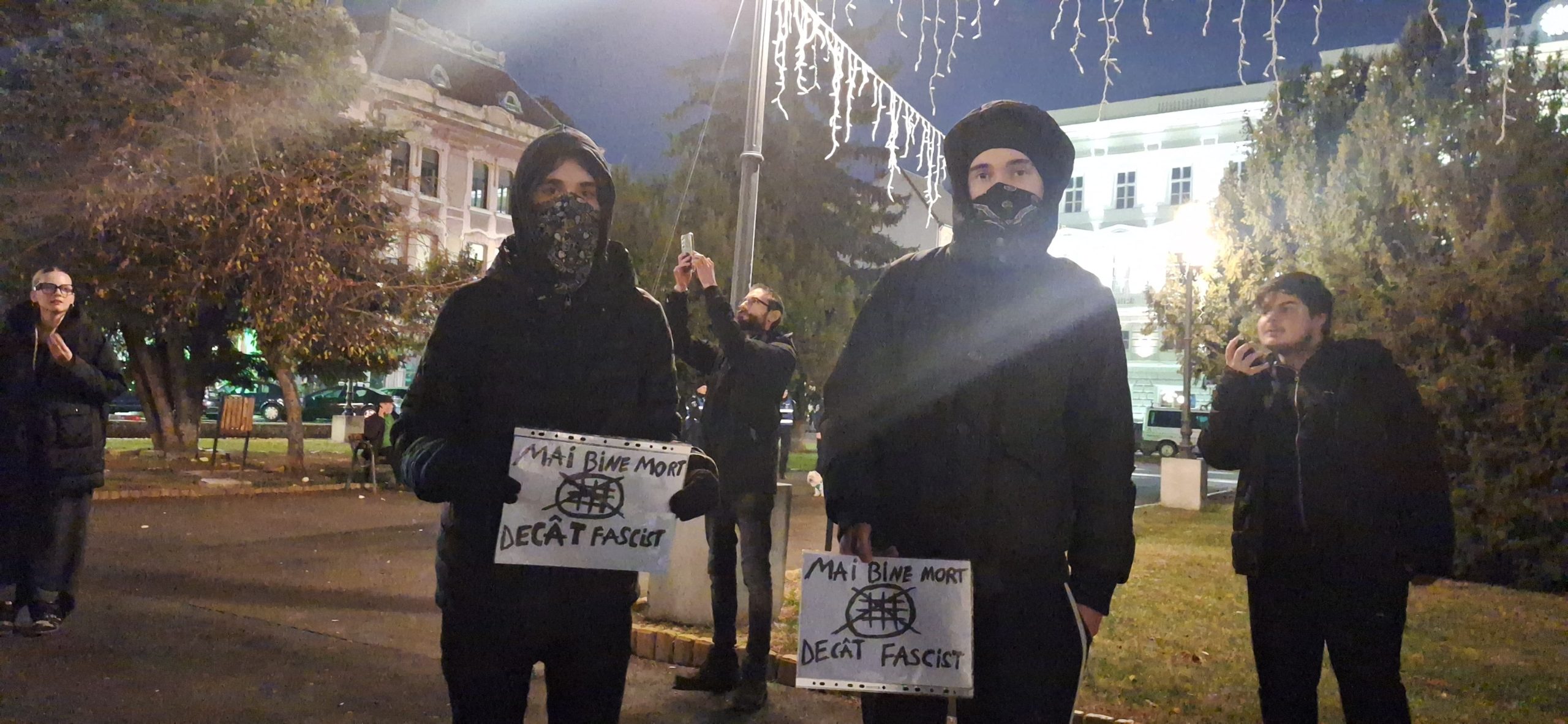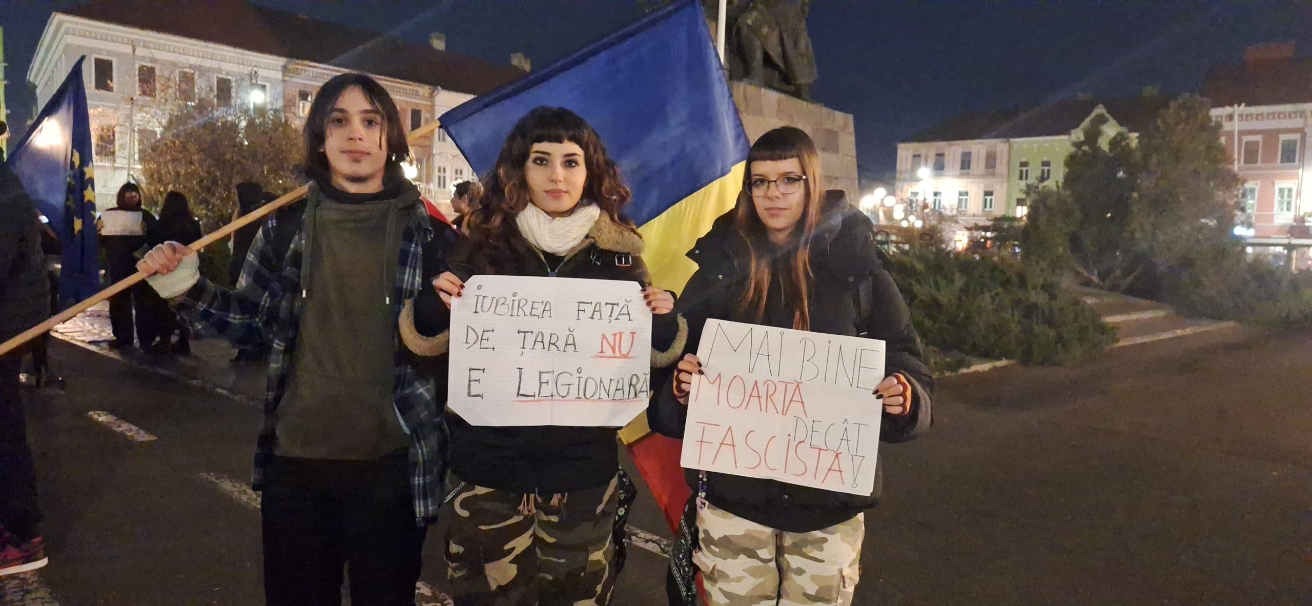 Aproximativ 200 de tineri s-au adunat în Piaţa Avram Iancu, unde au manifestat aproximativ trei ore afişând mesaje antifasciste şi antilegionare.