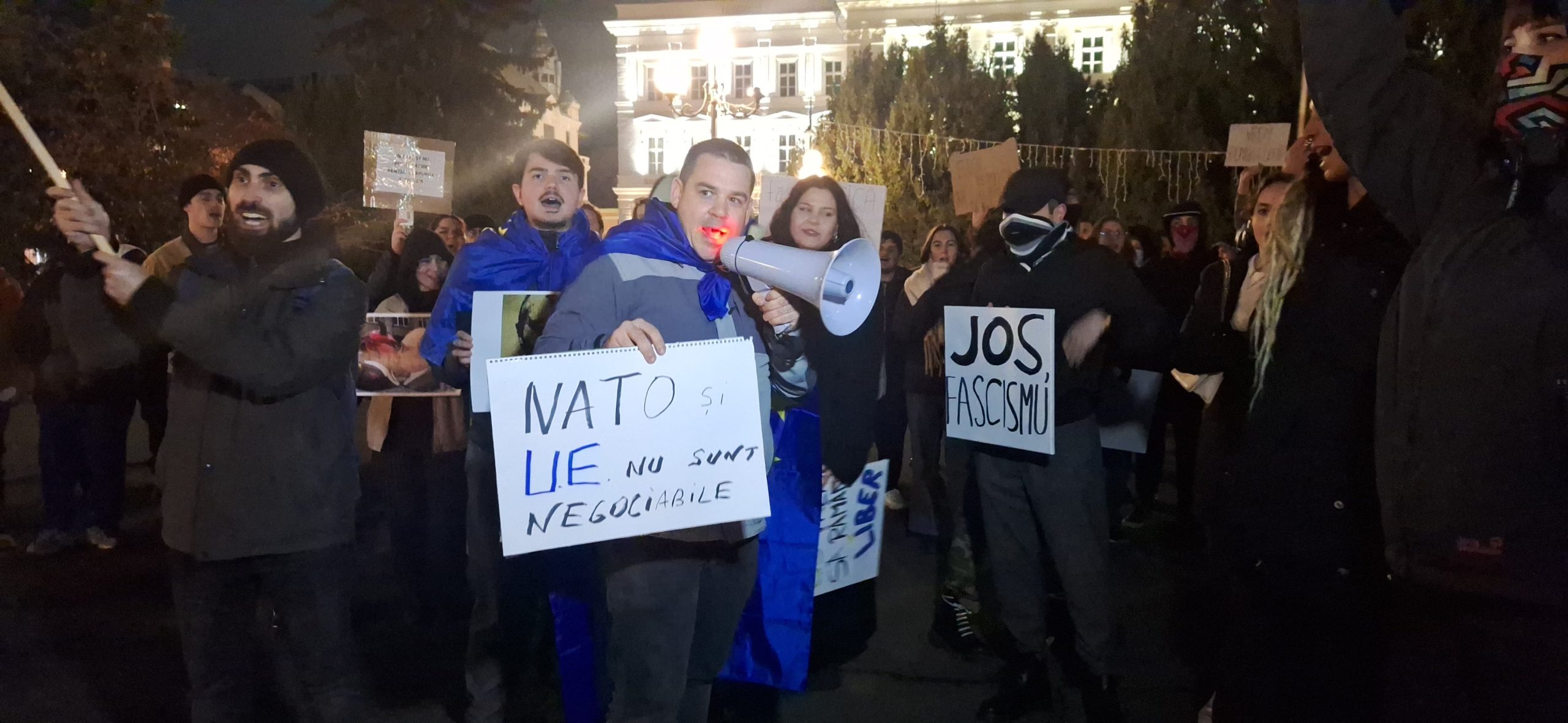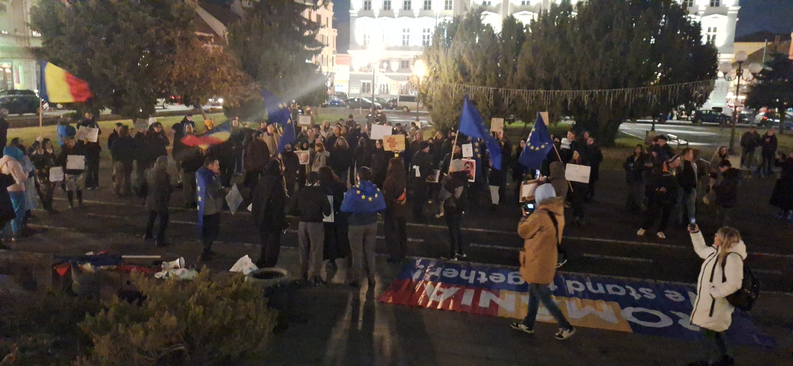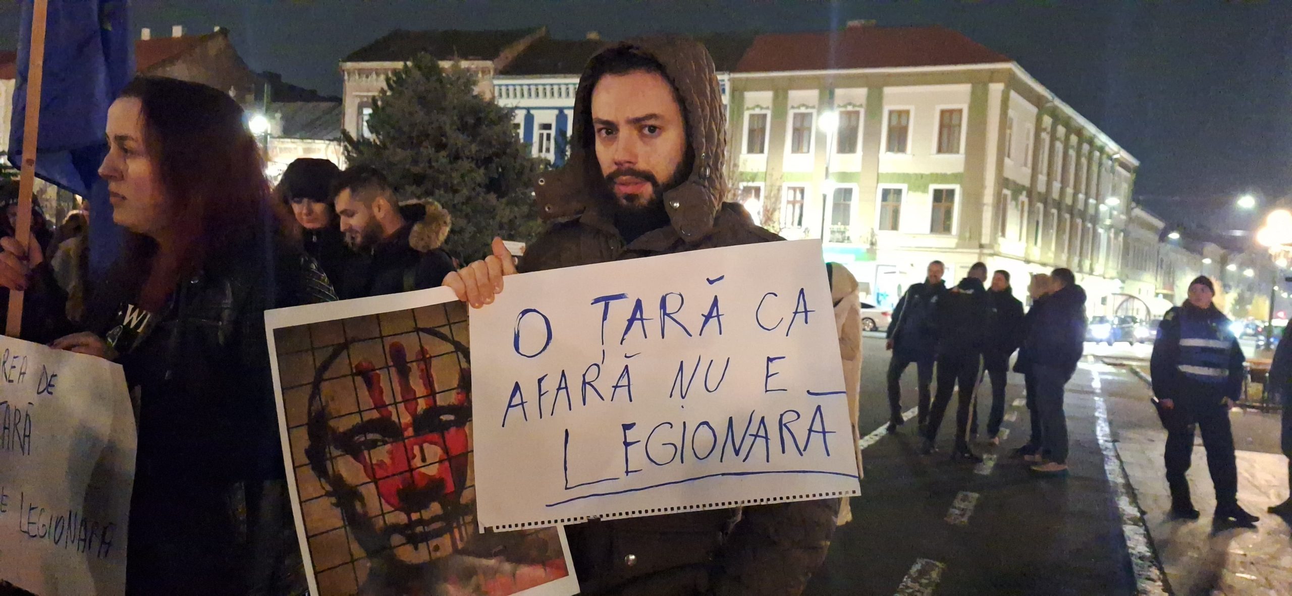 Aproximativ 200 de tineri s-au adunat în Piaţa Avram Iancu, unde au manifestat aproximativ trei ore afişând mesaje antifasciste şi antilegionare.
