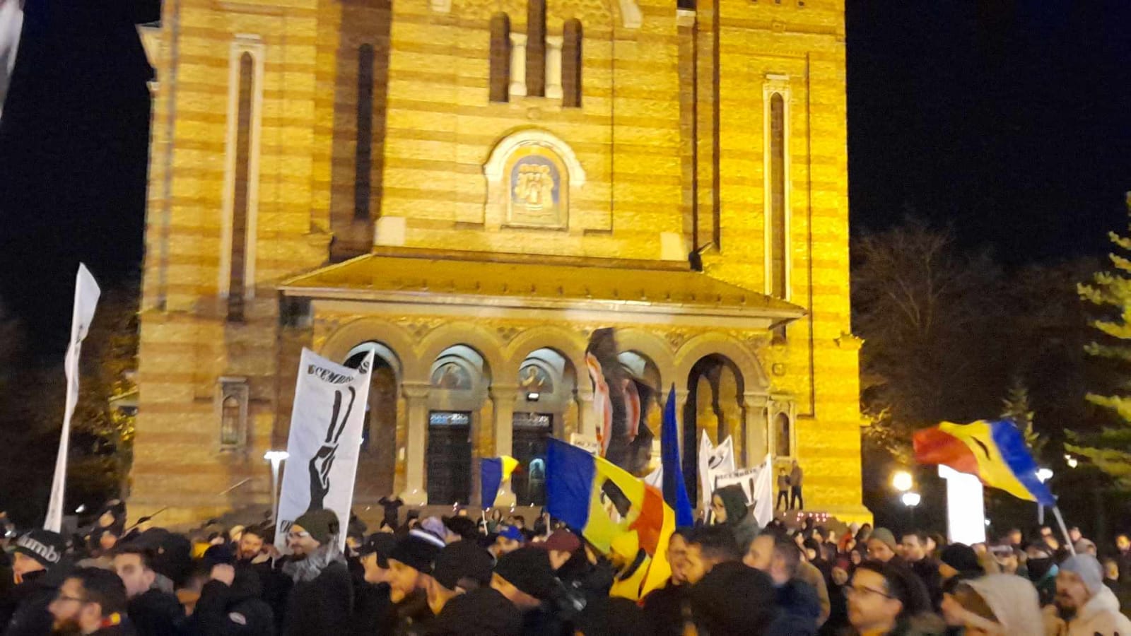 Suporterii timişoreni s-au adunat, la Biserica Reformată din Piaţa Maria, locul unde a început Revoluţia anticomunistă de acum 34 de ani.