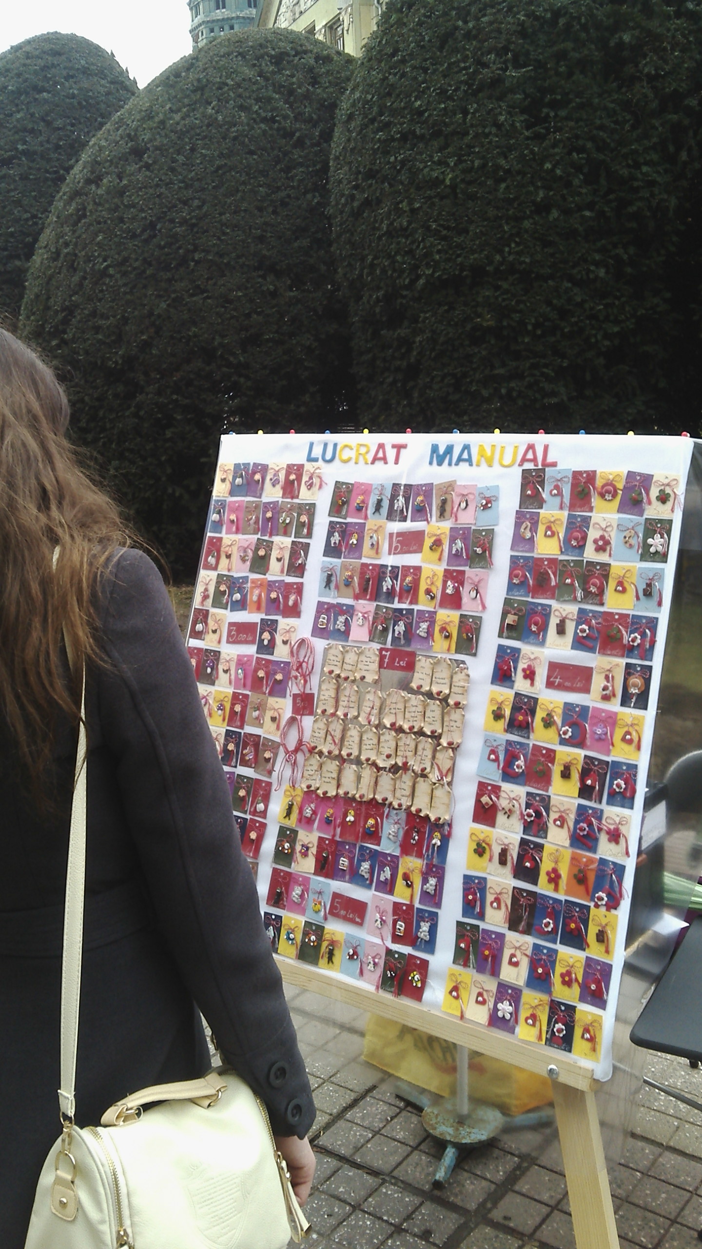 Avem mai multe… avem la 5 lei, la 4 lei, la 3 lei. Sunt mărțișoare simbolice, cu ghiocei, cu tot felul de forme din desene animate. Avem și magneți.