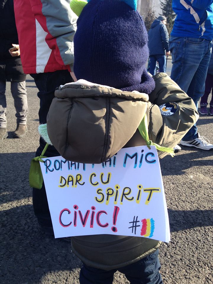 Cei care au venit fără pancarte au găsit în Piaţa Victoriei cartoane şi carioci pentru a le confecţiona pe loc. Copiii au fost cei care au scris texte precum „chiar dacă sunt mic, sunt şi eu aici”, „vrem să învăţăm ce e corect; învăţaţi-ne voi”, „România trebuie să fie liberă”, „adevărul se învaţă de mic”, „noi nu ştim să furăm”, scrie romania-actualități.ro