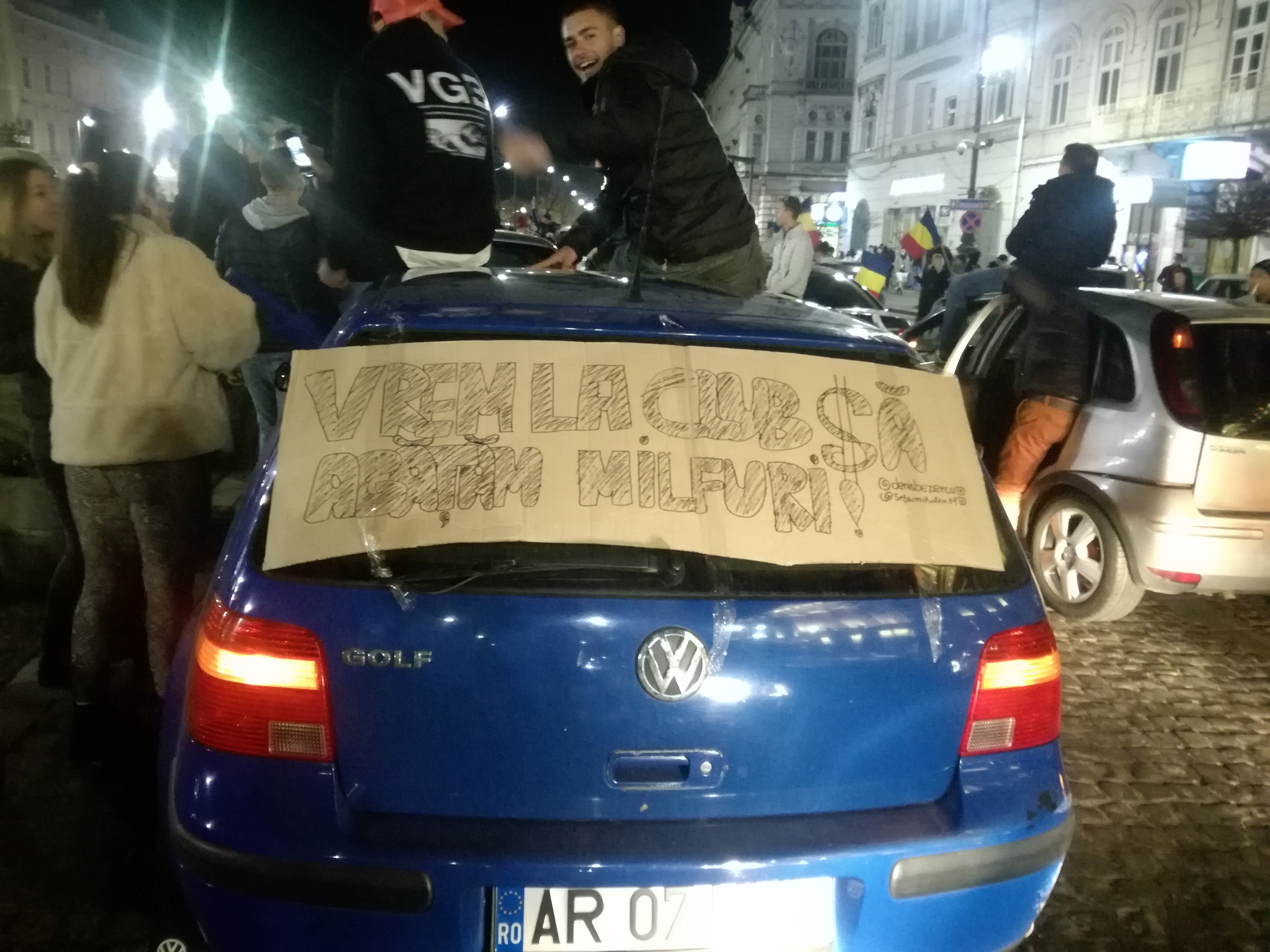 Participanţii, în marea lor majoritate tineri, au scandat ‘Libertate!’ sau ‘Hoţii!’, au folosit vuvuzele şi petarde pentru a produce zgomote, în timp ce alţii au claxonat şi au ambalat motoarele maşinilor şi motocicletelor.