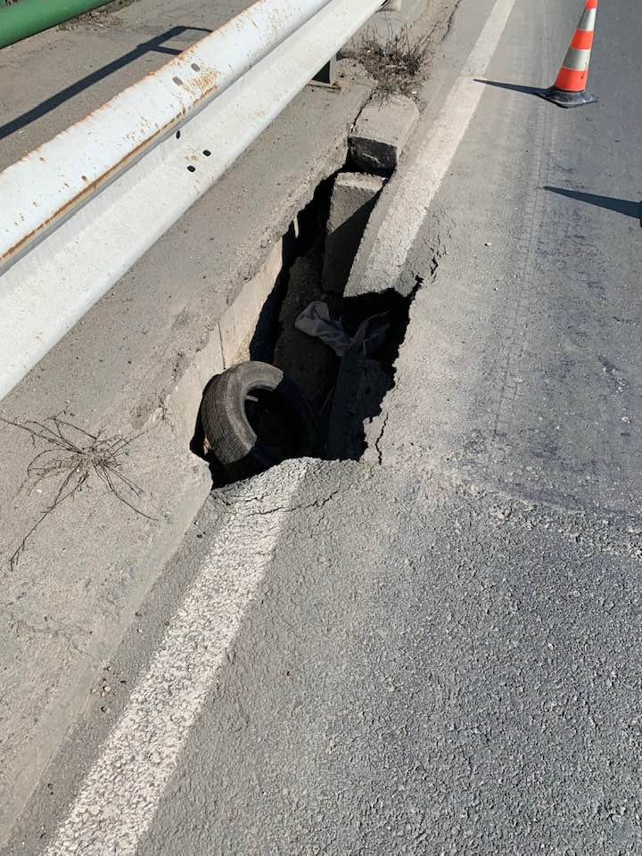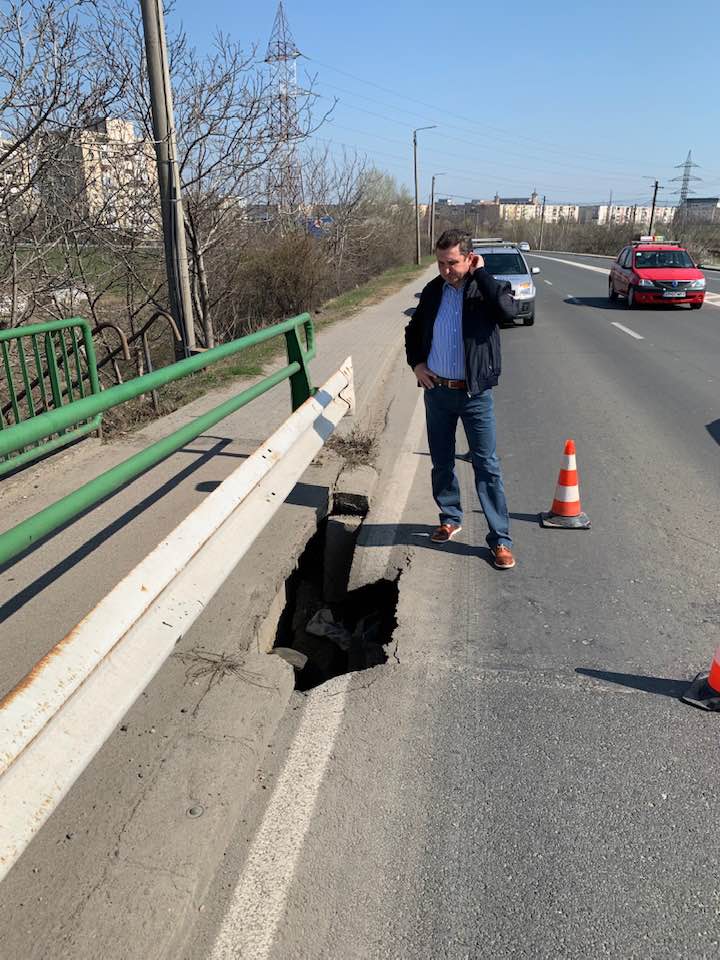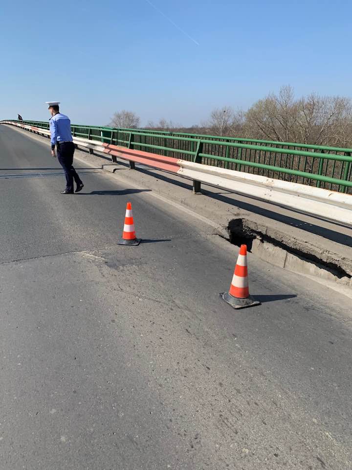 “Ca urmare a unei sesizări cu privire la surparea unei bucăți din carosabil la urcarea pe podul Micălaca, pe prima banda de circulație în sensul de mers înspre Activ Club, polițiștii locali cu atribuții de circulație au acționat într-un timp foarte scurt la securizarea zonei și la fluidizare traficului pentru evitarea producerii unor incidente potențial grave, până la sosirea unei echipe de intervenție în vederea remedierii situației”, anunță Poliția Locală Arad.