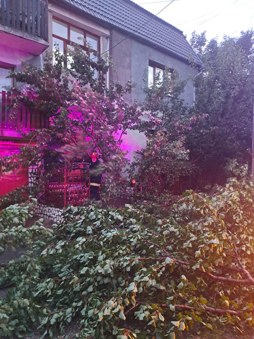 Echipele ISU au fost chemate să înlăture copaci rupți de vânt și ploaie, inclusiv pe maşini, de pe mai multe străzi din oraș, printre care Păcii, Brândușei, Oituz, Orizontului sau Corneliu Coposu