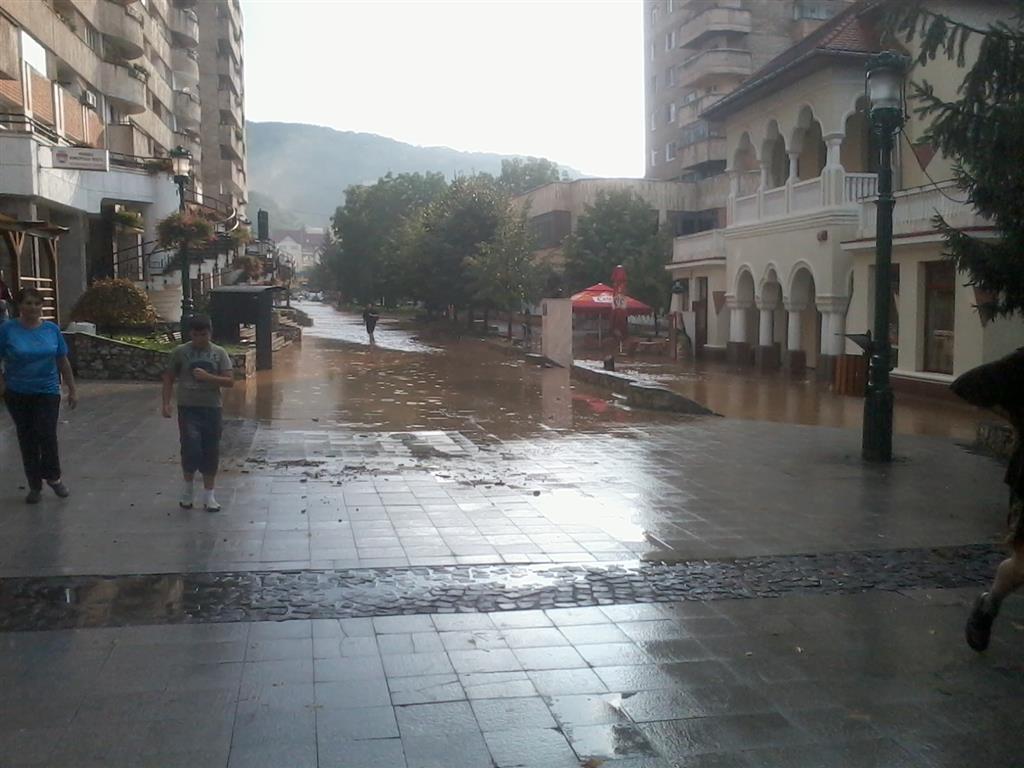 O ploaie scurtă, dar de intensitate mare, a inundat vineri după-amiază mai multe străzi din municipiul Reşiţa, din cauza faptului că, în partea montană a oraşului, canalizarea nu a mai putut face faţă.