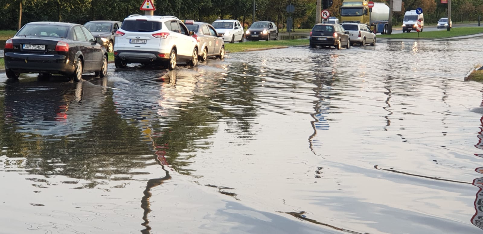 În cartierul Sânicolaul Mic a fost inundat un sens giratoriu, unde circulația a fost fost blocată, însă probleme au fost semnalate la pasajul din cartierul Grădiște.
