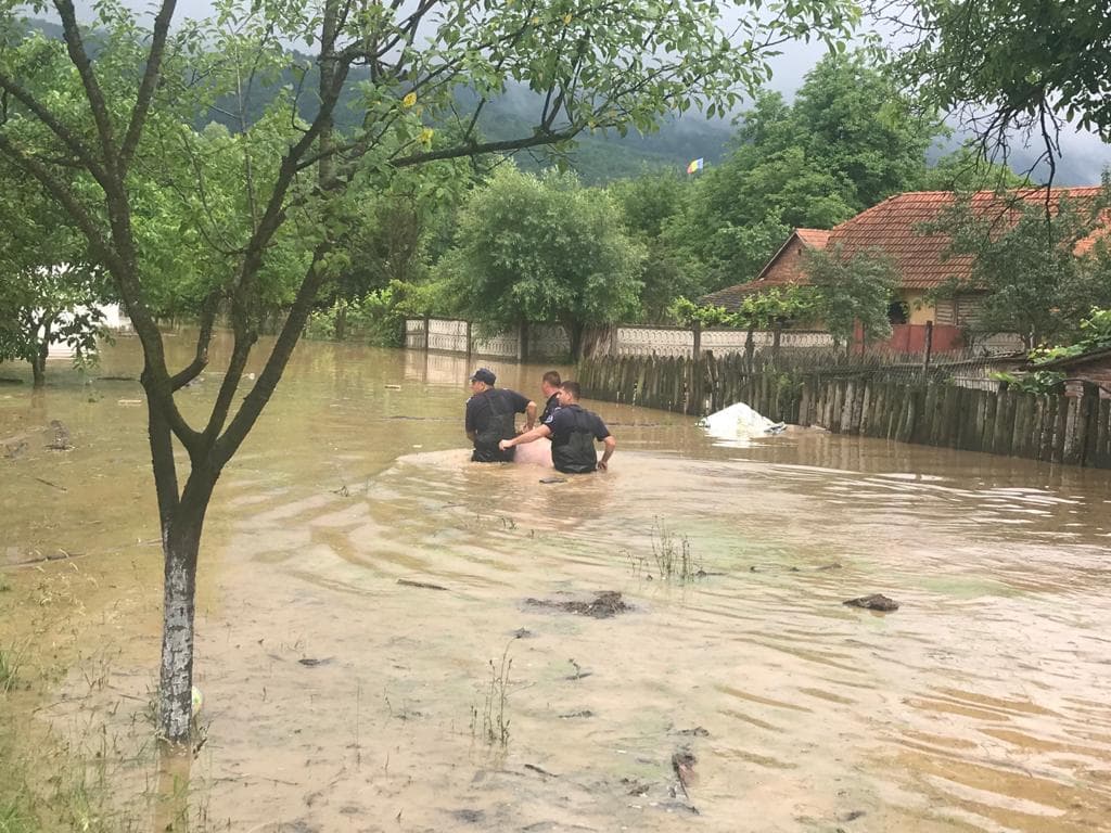 40 de pompieri intervin pentru evacuarea apei cu trei motopompe de mare capacitate și continuă evacuarea bunurilor din locuințe.