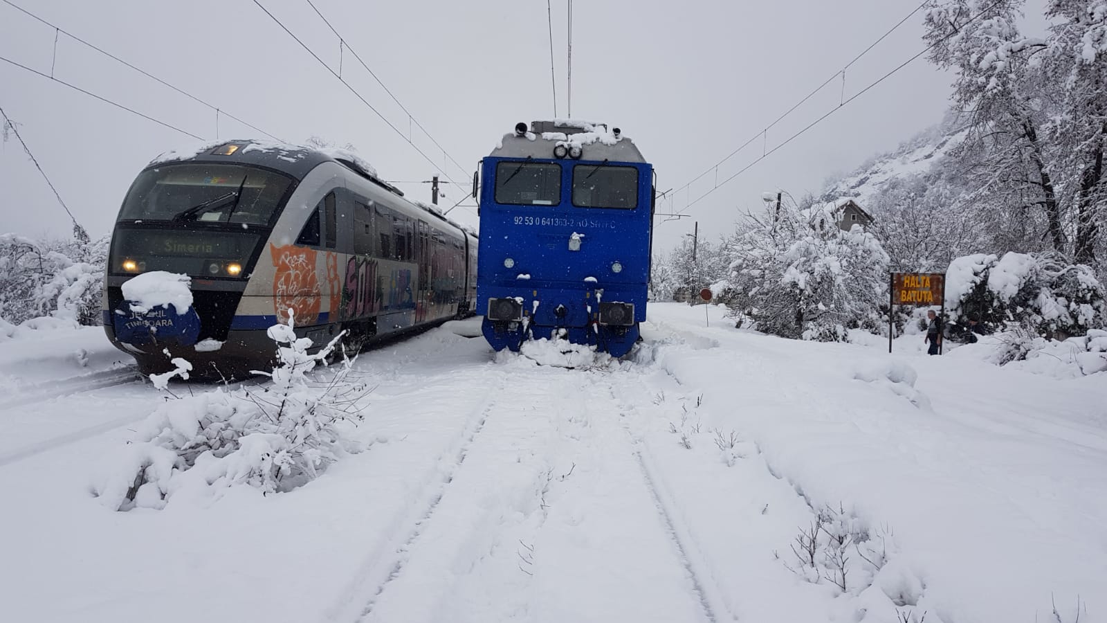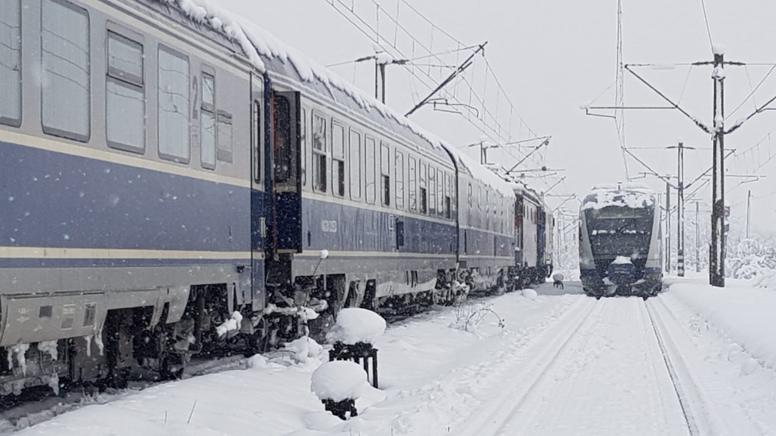 Oameni înghețați și înfometați în trenurile blocate pe șine în vestul țării
