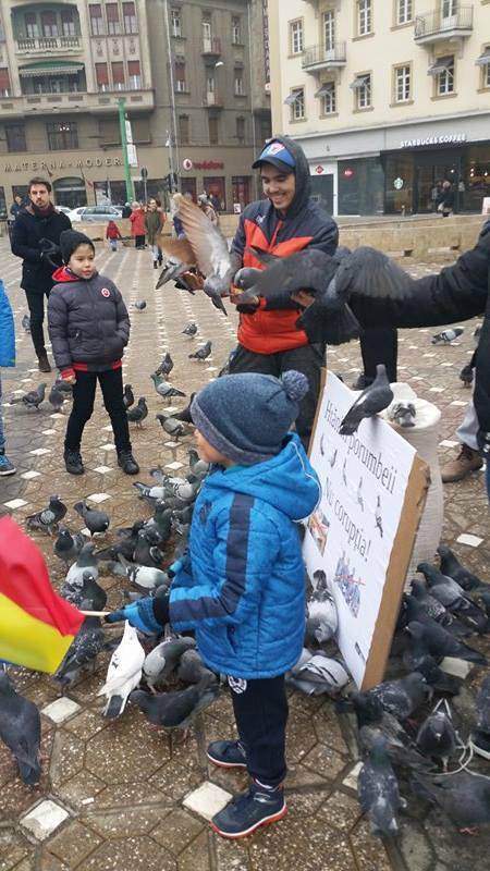 Micuţii au fost aduşi de părinţi şi pentru a se distra dar şi pentru a fi solidari cu mesajul “Hrănim porumbeii, nu corupţia”, mulţi dintre adulţi fiind prezenţi şi la protestele de seară din Piaţa Operei.