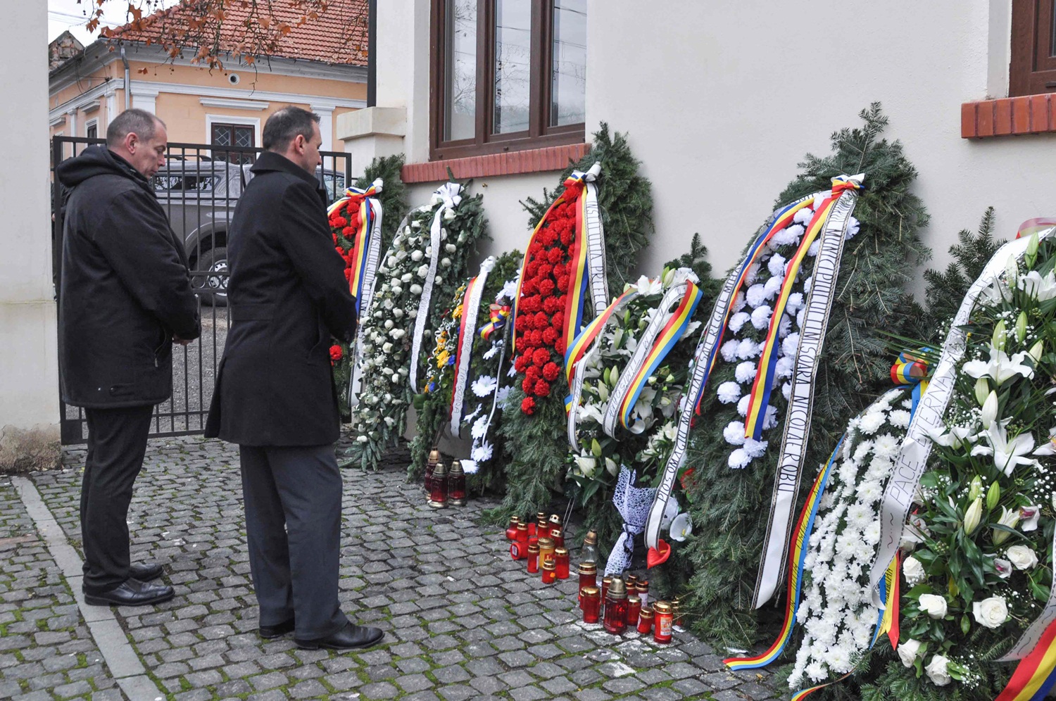 Au depus coroane reprezentanți ai Instituției Prefectului Timiș, Consiliului Județean Timiș, Primăriei Timișoara, Universității de Științe Agricole și Medicină Veterinară a Banatului, Universității de Vest, Universității Politehnica, Filarmonicii Banatul, Memorialului Revoluției, Societății Timișoara, dar și de la Horticultura, Aquatim, Administrația Bazinală de Apă Banat și Biblioteca Central Universitară.