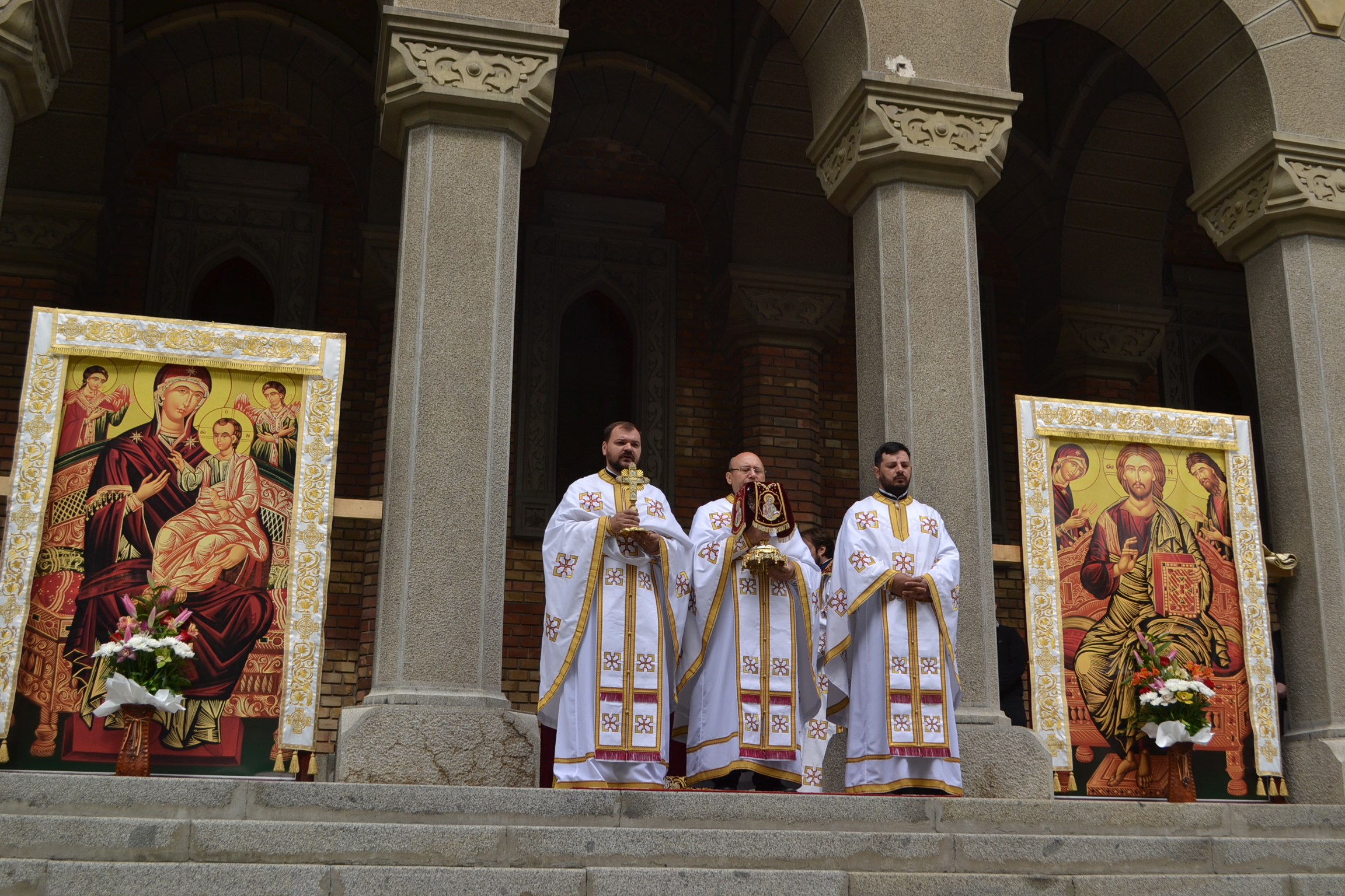 Sfânta Liturghie Arhierească a fost oficiată în aer liber de un sobor de preoţi şi diaconi în frunte cu Mitropolitul Banatului, Ioan Selejan.