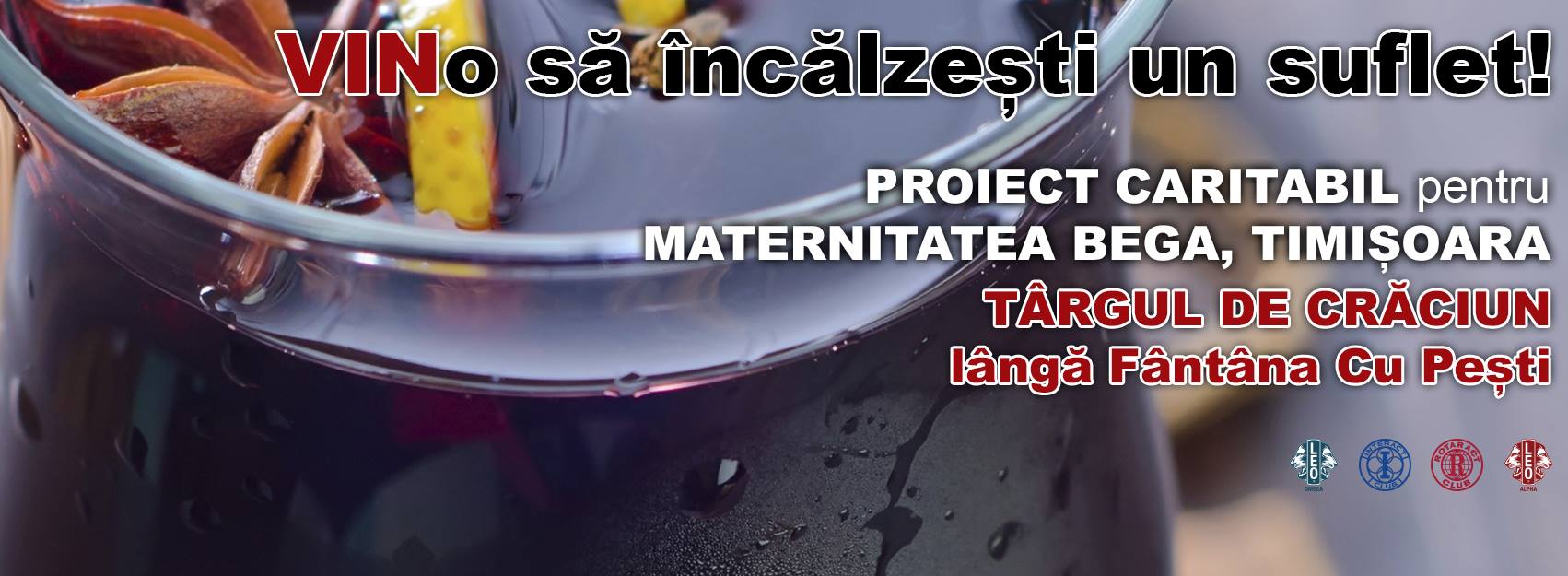 Până în data de 21 decembrie, căsuța “VINo să Încălzești un Suflet” va fi amplasată în Piața Victoriei, lângă Fântâna cu Pești.Membrii cluburilor Rotaract, LEO și Interact vor servi vizitatorii cu căni de vin fiert și ceai. Trecătorii se bucură și de obiecte specifice sărbătorilor de iarnă, dar pot oferi donații pentru a sprijini cauza Maternității Bega.