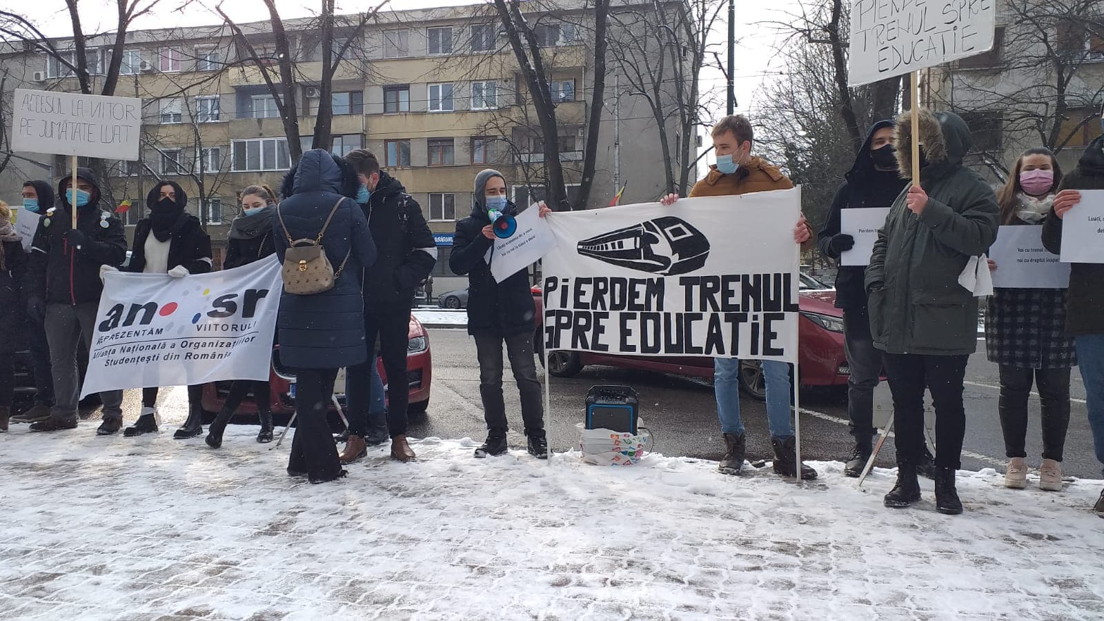 Protest al studenților din Timișoara, nemulțumiți de intenția de eliminare a călătoriilor gratuite cu trenul