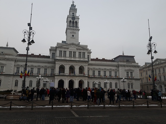 Protest în fața Primăriei din Arad