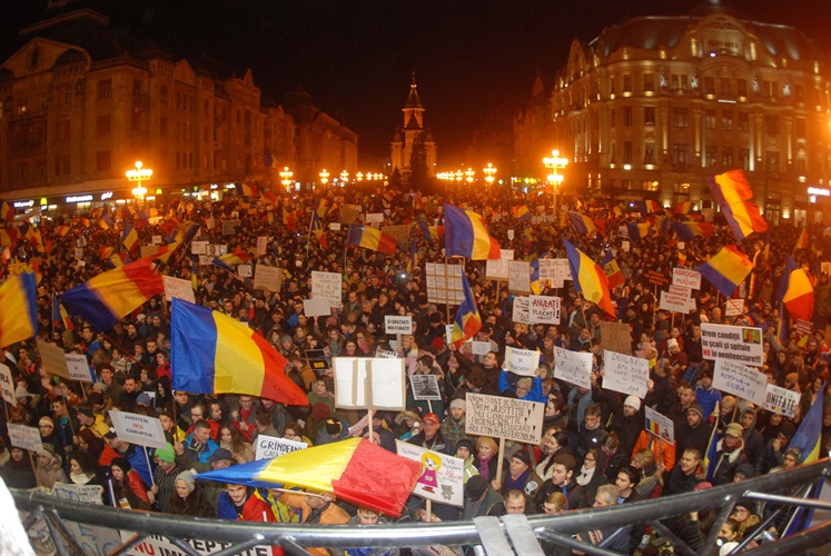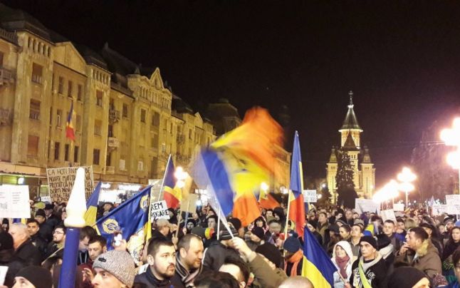 Manifestanţii au început să se adune în Piaţa Victoriei din Timişoara, pentru a cincea zi consecutiv. Mii de oameni protestează împotriva ordonanţei adoptate de Guvern privind modificarea Codurilor penale. Protestatarii au venit în grupuri masive din cartierele oraşului.