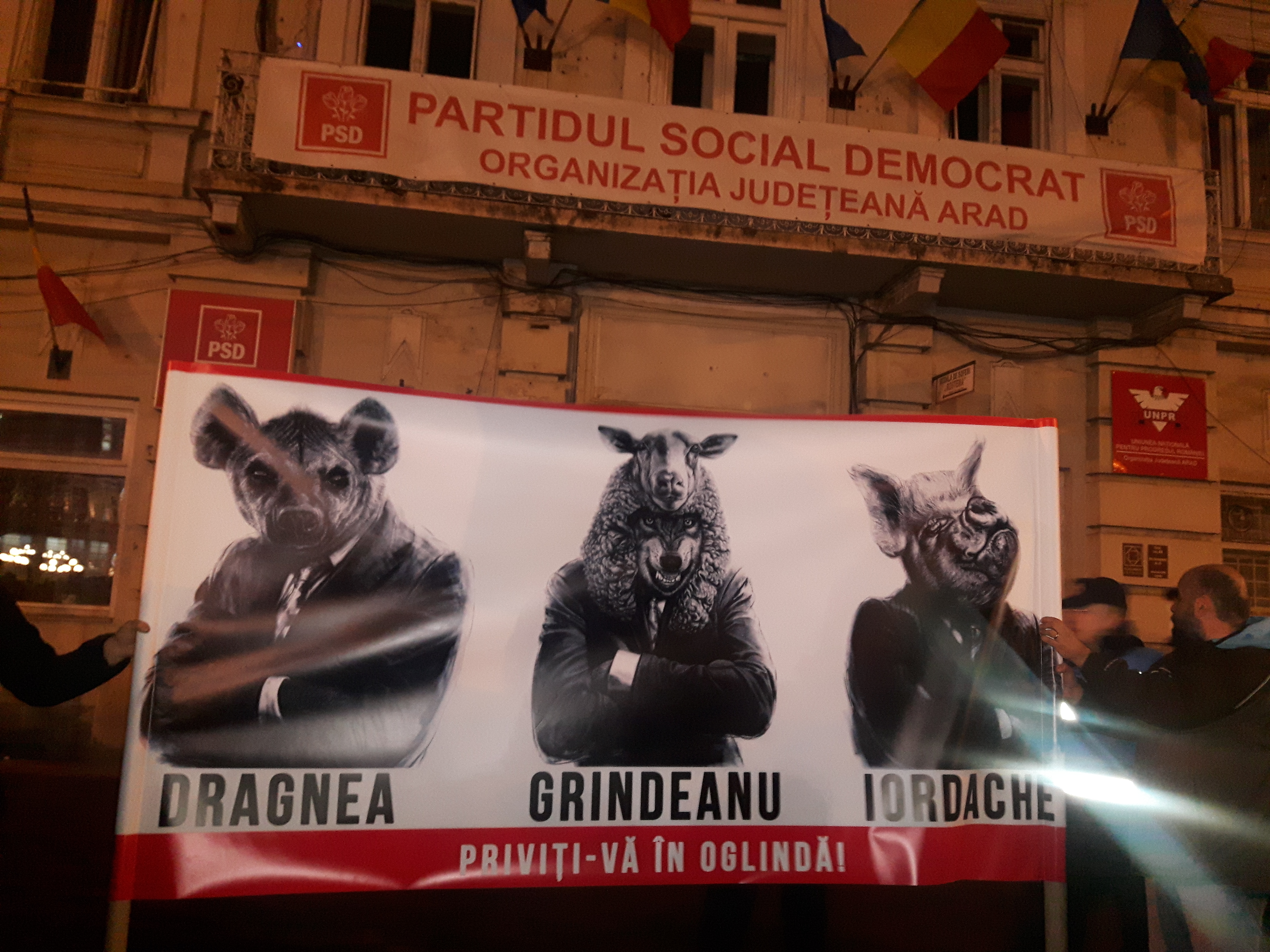Circa 5.000 de oameni au protestat şi la Arad faţă de modificările în domeniul penal făcute de către Guvern.Oamenii s-au adunat în Piaţa Revoluţiei, pe platoul din faţa Palatului Adminsitrativ, din centrul municipiului, ulterior s-au mjutat în faţa sediului PSD Arad. Pentru că numărul protetstarile a fost mare, în scurt timp, circulaţia maşinilor şi tramvaielor prin Piaţa Revoluţiei s-a blocat.