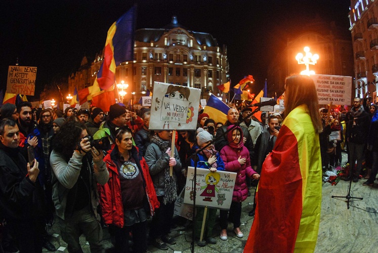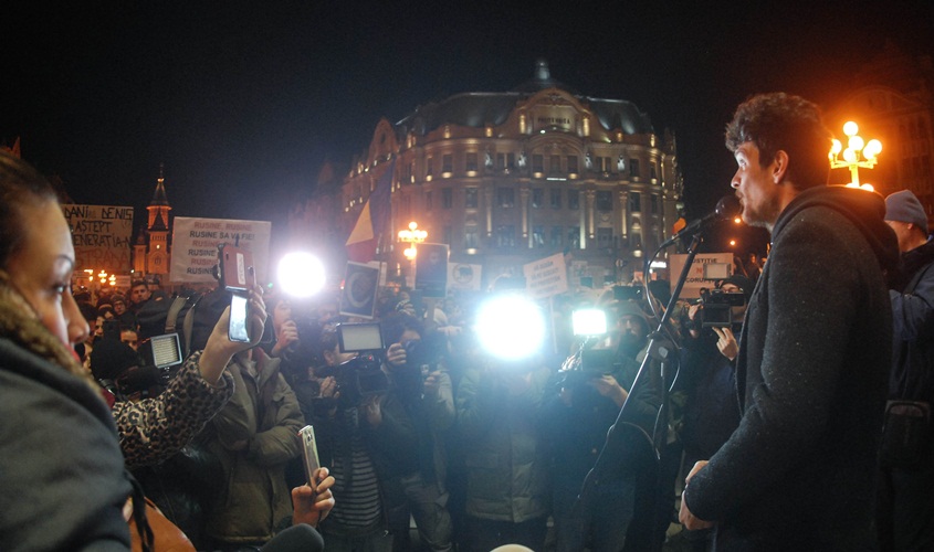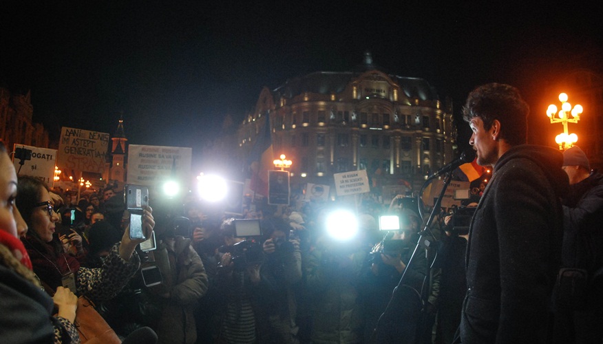 În jurul orei 20:00, în Piața Victoriei se afla aproximativ 10.000 de oameni care scandeaza fără încetare „Ruşine sa va fie!”, „Refuz acest abuz!”. Oamenii flutura steaguri tricolore şi pancarte cu mesaje de nemulțumire.