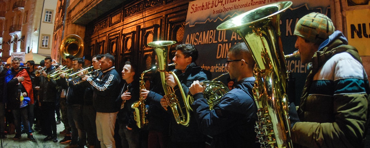 Timişorenii din Piaţa Operei se pregătesc să plece în marş prin oraş, pe traseul Piaţa Operei – Piaţa Libertăţii – Hotel Continental – Michelangelo – Vasile Pârvan – Piaţa Operei. Tudor Chirilă a ajuns în Piaţa Operei