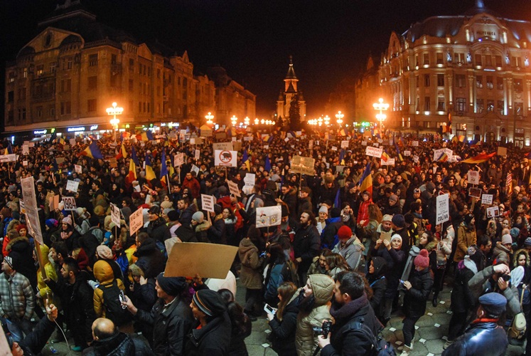 Timişorenii s-au adunat, din nou, în aceasta seară în Piața Victoriei. Oamenii sunt nemulțumiți de faptul ca Guvernul nu retrage ordonanța de urgență privind modificarea codurilor penale.