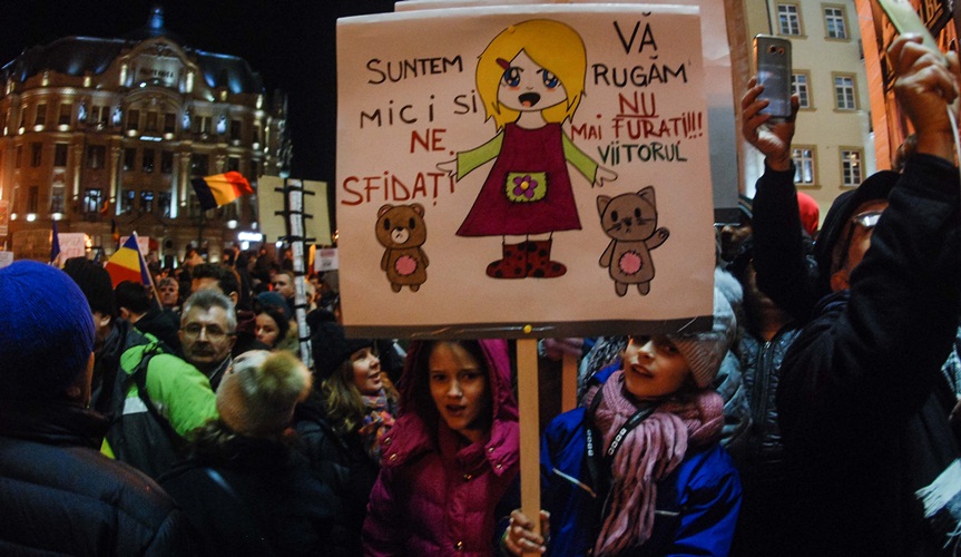 Câteva sute de reşiţeni au ieşit şi vineri în stradă, pentru a continua protestele începute după adoptarea de către Guvern a ordonanţei de urgenţă ce prevede modificarea codurilor penale.