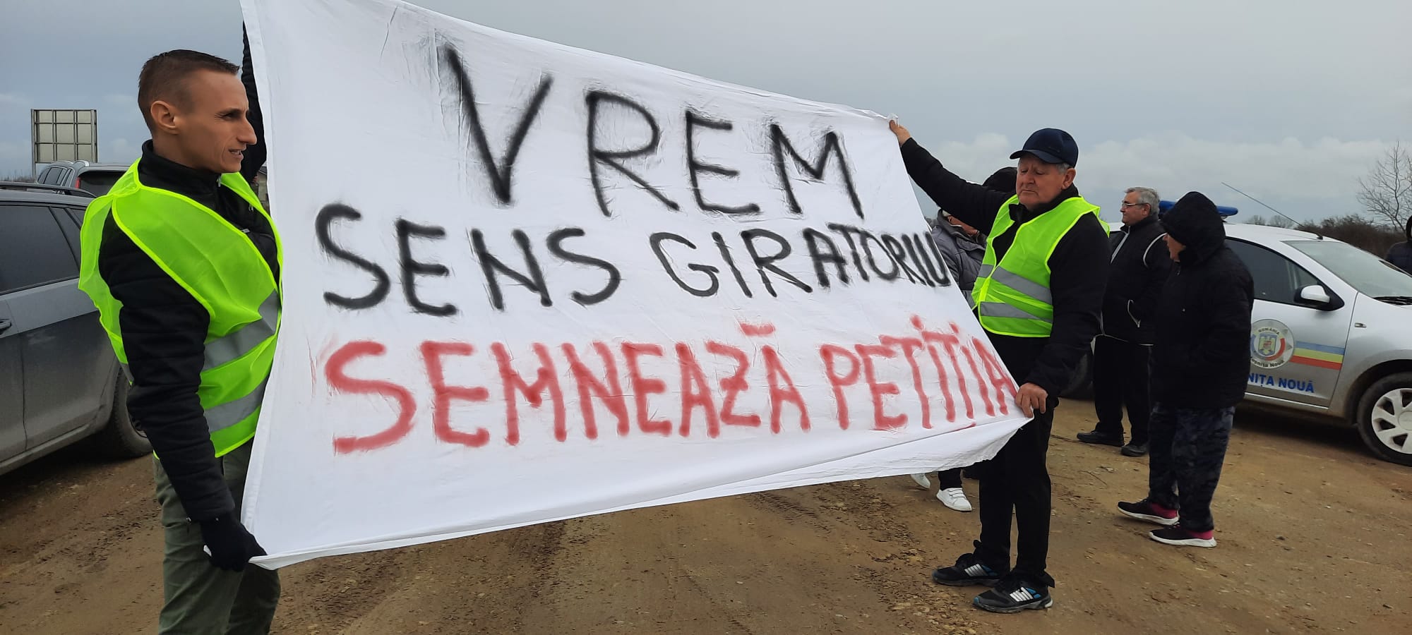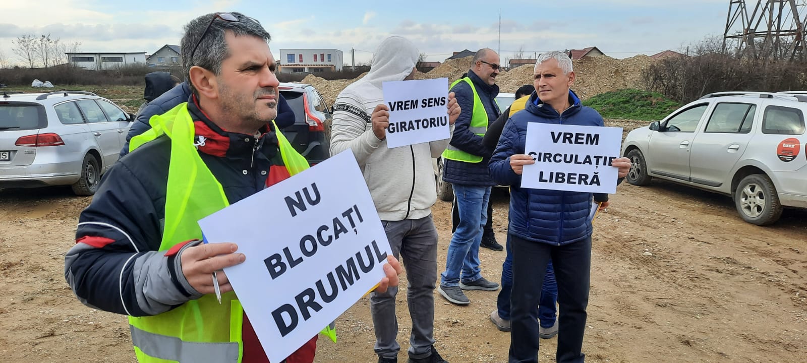 Organizatorul protestului, Marian Dobre, spune că a realizat personal un studiu de trafic din care a reieșit că pe drumul pe care se cere amenajarea unui sens giratoriu circulă șase mii de mașini în decurs de 12 ore.