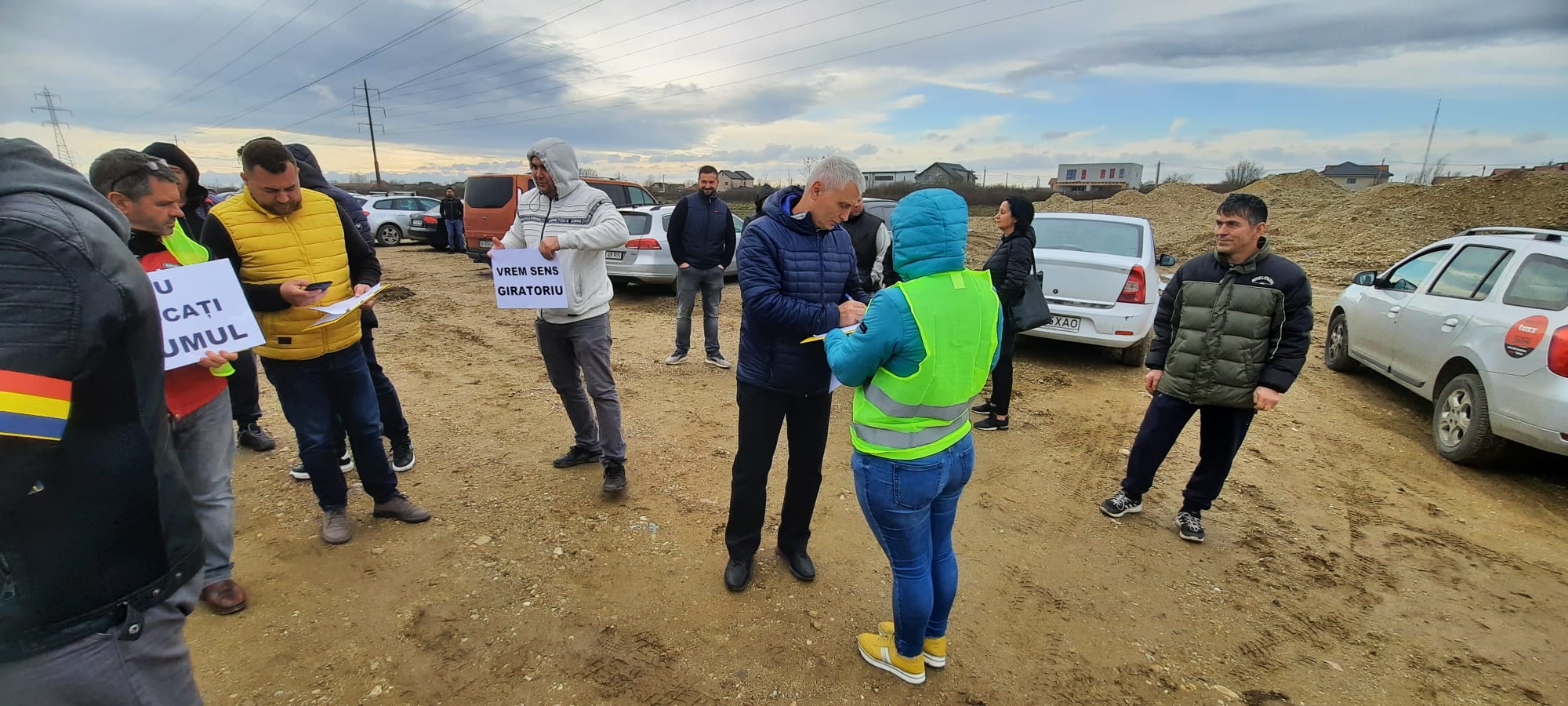 Aproximativ 30 de cetățeni au protestat pe șantierul centurii de Sud a Timișoarei, cerând amenajarea unui sens giratoriu la intersecția dintre Calea Urseni și varianta de ocolire.