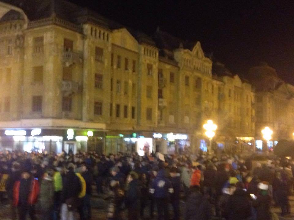 Aproximativ 500 de persoane s-au adunat, în această seară, în Piața Victoriei din Timișoara. Oamenii au ieșit în stradă după anunțul ministrului Justiției, Florin Iordache, privind adoptarea ordonanței de urgență privind modificarea codurilor penale și a proiectului de lege legat de grațierea unor pedepse.