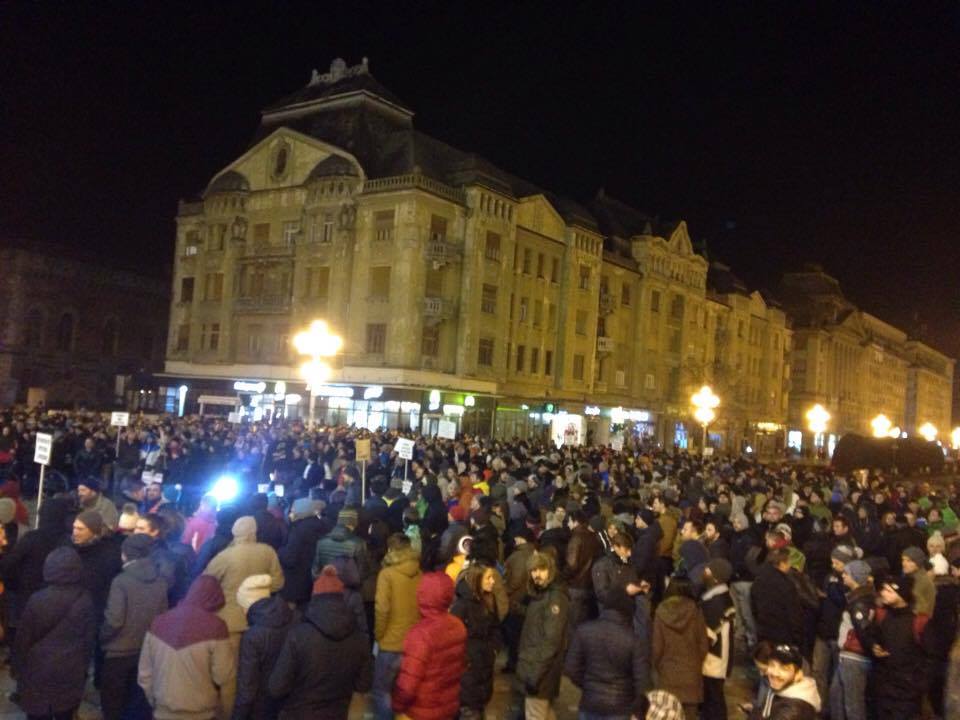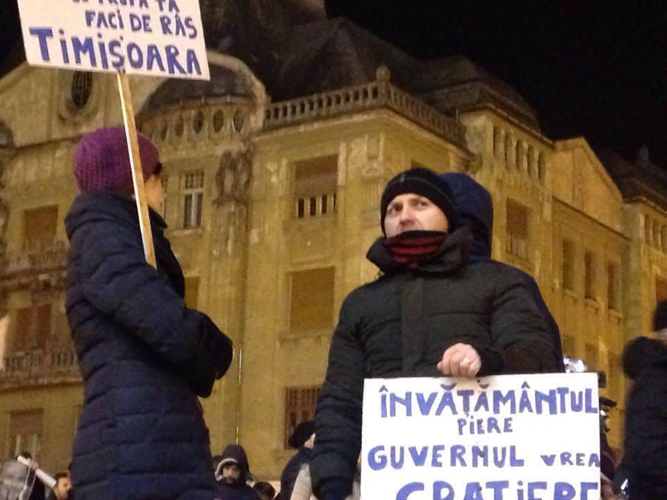 Protestatarii cer de urgență demisia Guvernului Grindeanu și îl numesc pe premier „trădătorul Timișoarei”. În jurul orei 00:15, numărul protestatarilor a ajuns la aproape 2.000 de persoane, transmite reporterul Radio Timișoara. Până la acestă oră nu s-au înregistrat incidente. Oamenii vor să iasă și miercuri la ora 12:00, fie în fața Prefecturii, fie în Piața Victoriei.