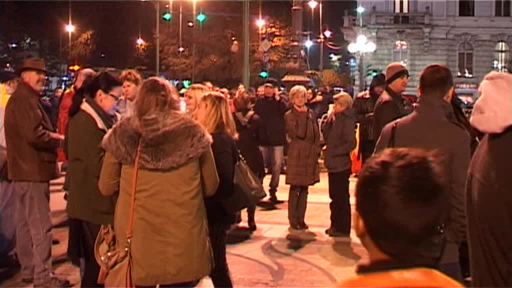 Circa 100 de oameni, de toate vărstele, au protestat în linişte pe platoul dini faţa Palatului Administrativ, din centrul municipiului Arad, faţă de intenţiile Guvernului de modificare a legilor justiţiei şi faţă de proiectul care ar permite cei condamnaţi penal să ocupe funcţia de preşedinte al ţării.