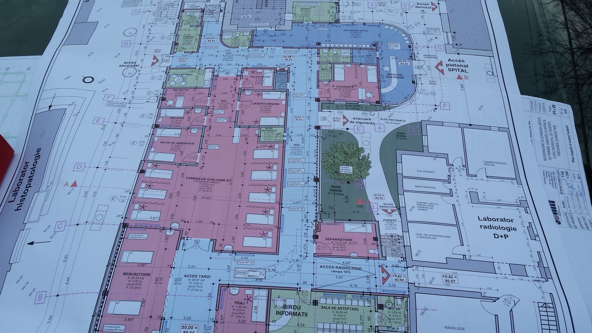 Este vorba despre o extindere a spațiului actualei Unități de Primire Urgențe. Noul spațiu rezultat va fi mai mare cu 350 de metri pătrați decât cel actual. Vom avea spații deschise, spații care vor permite activitatea neîngrădită a medicilor care desfășoară urgența. În plan, după cum ați văzut, sunt prevăzute două paturi într-un salon pentru urgențele majore, pentru cazurile critice care necesită manevrele de resuscitate. De asemenea, sunt prevăzute 14 paturi pentru urgențele care sunt grave, dar care nu impun manevre de resuscitare.