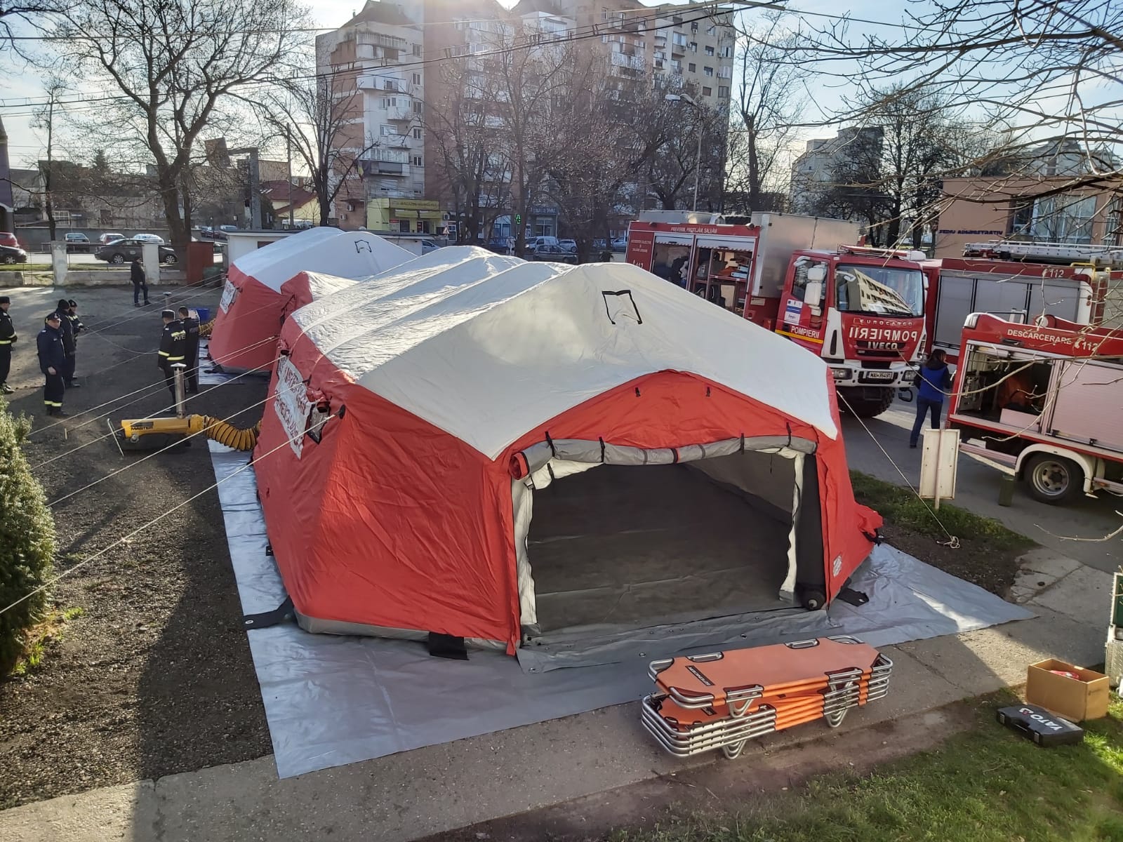 „În fiecare cort am montat paturi și perfuzoare. Monitoarele și cealaltă aparatură medicală se montează la solicitarea UPU, în funcție de necesitățile medicale. Tot în caz de nevoie ISU Arad asigură alimentarea cu energie electrică.  Capacitatea corturilor este dată tot de dinamica operativă”, a declarat purtătorul de cuvânt al ISU Arad, maior George Pleșca.