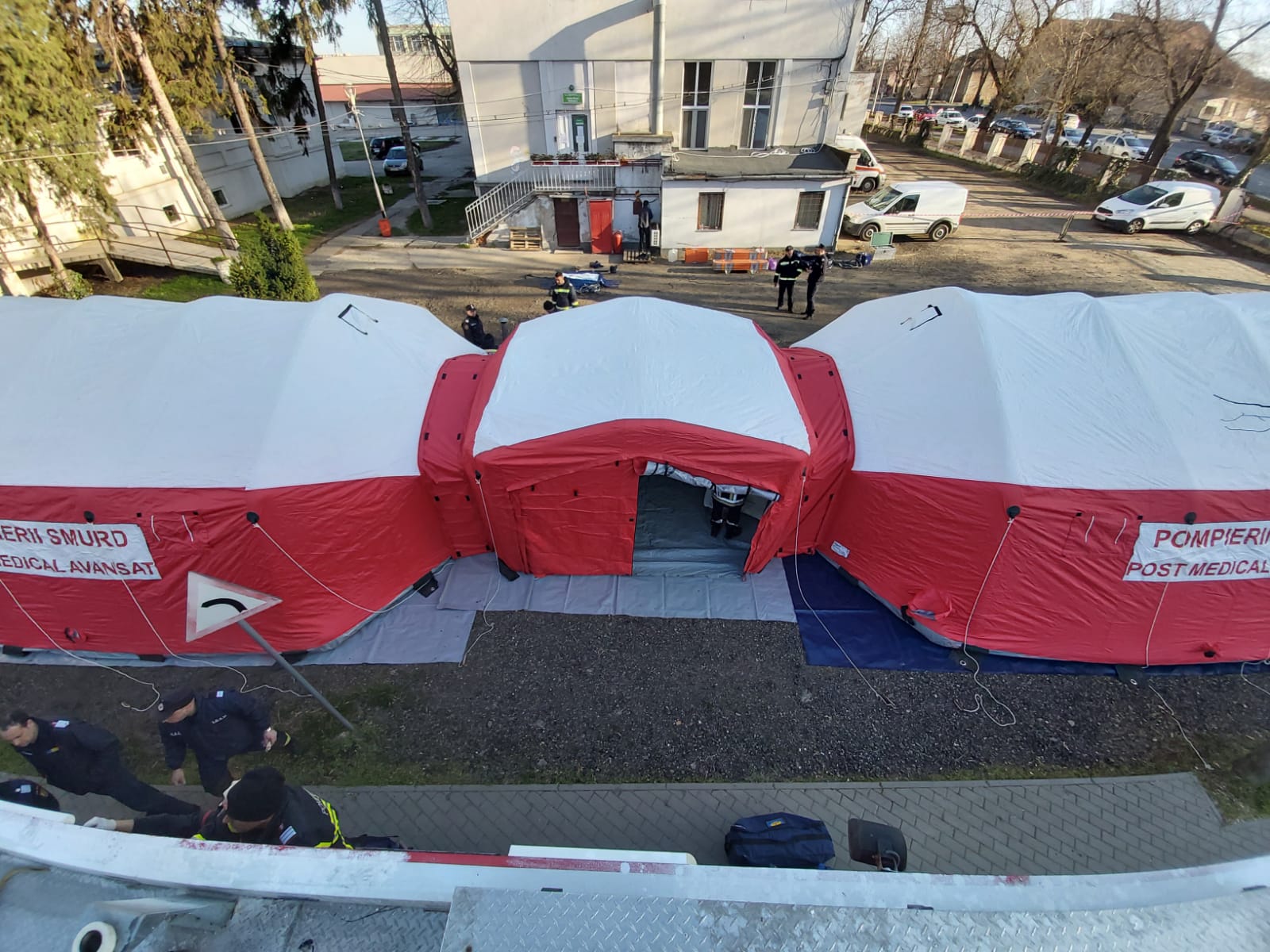 Postul medical avansat, din cadrul ISU Arad, montat în curtea Spitalului Județean