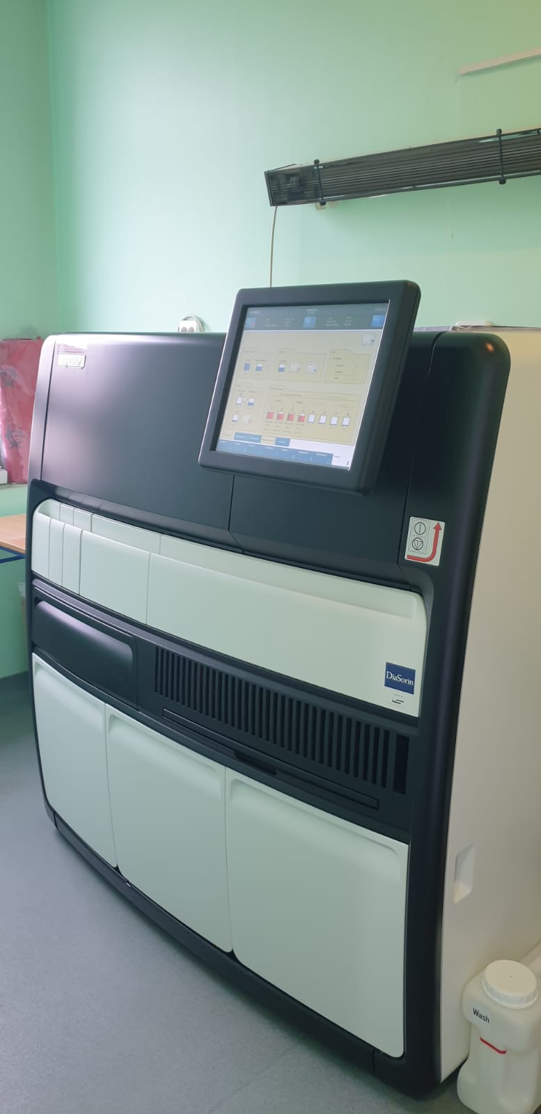 Aparatul poate să analizeze 100 de probe în acelaşi timp, iar rezultatul se obţine în 40 de minute.