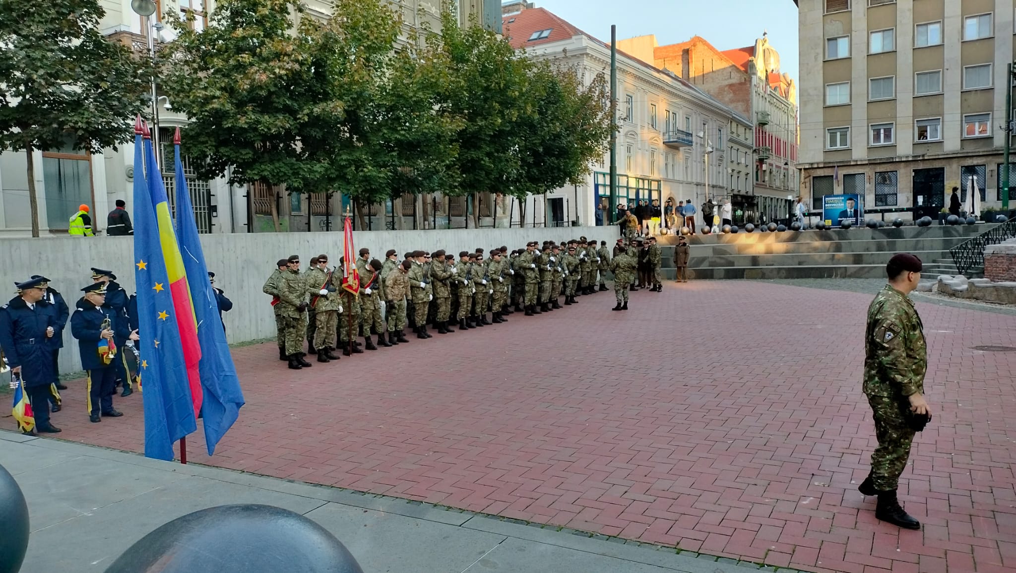 Și caporal Sergiu Olah, numit anul acesta cetățean de onoare al Timișoarei, a fost în Piața Sfântul Gheorghe să salute colegii care pornesc cu Ștafeta Veteranilor spre Carei.