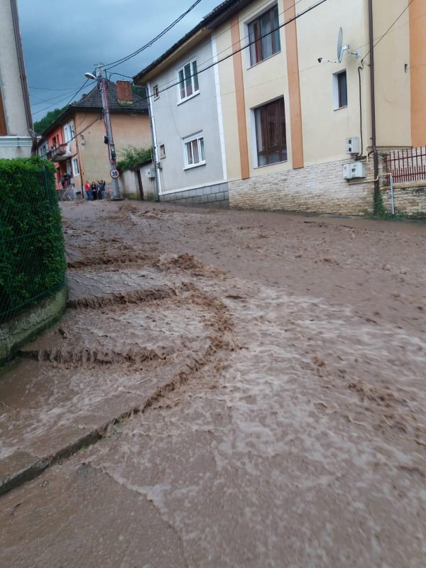 Mai multe străzi, curţi şi beciuri din Reşiţa au fost inundate în urma ploilor abundente.