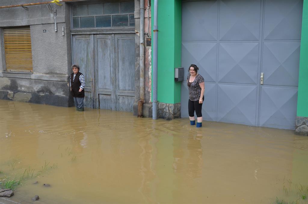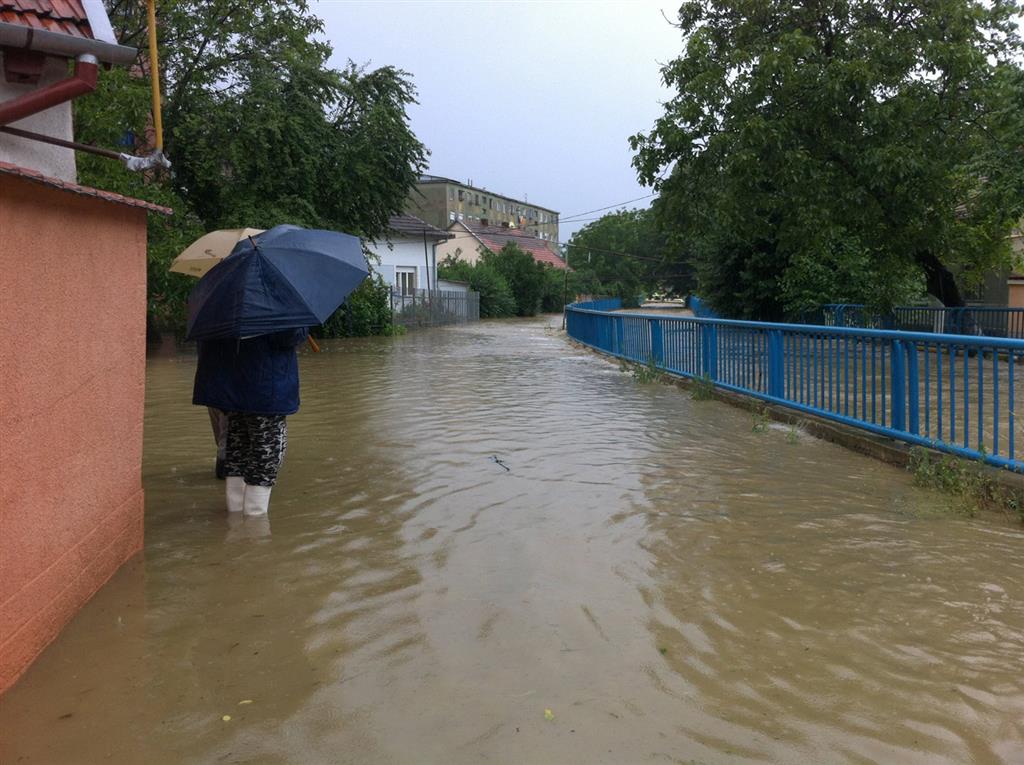 Au fost inundate case, curţi şi magazine iar pompierii intervin şi duminică pentru evacuarea apei, în special, din pivniţele unor locuinţe.