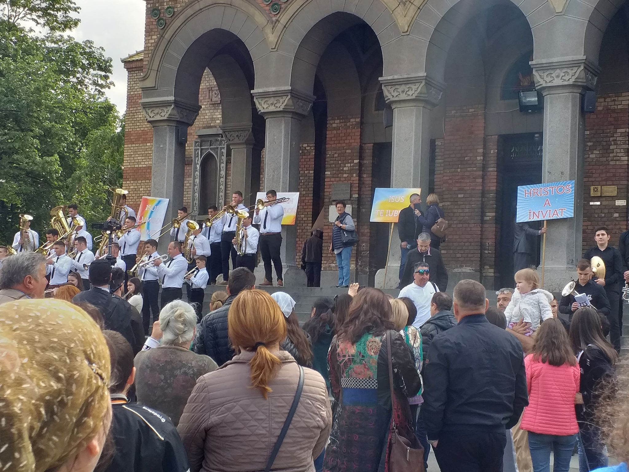 Credincioşii de la mai multe confesiuni s-au reunit în faţa Catedralei Mitropolitane, unde au ascultat muzică de fanfară şi mesajele preoţilor.