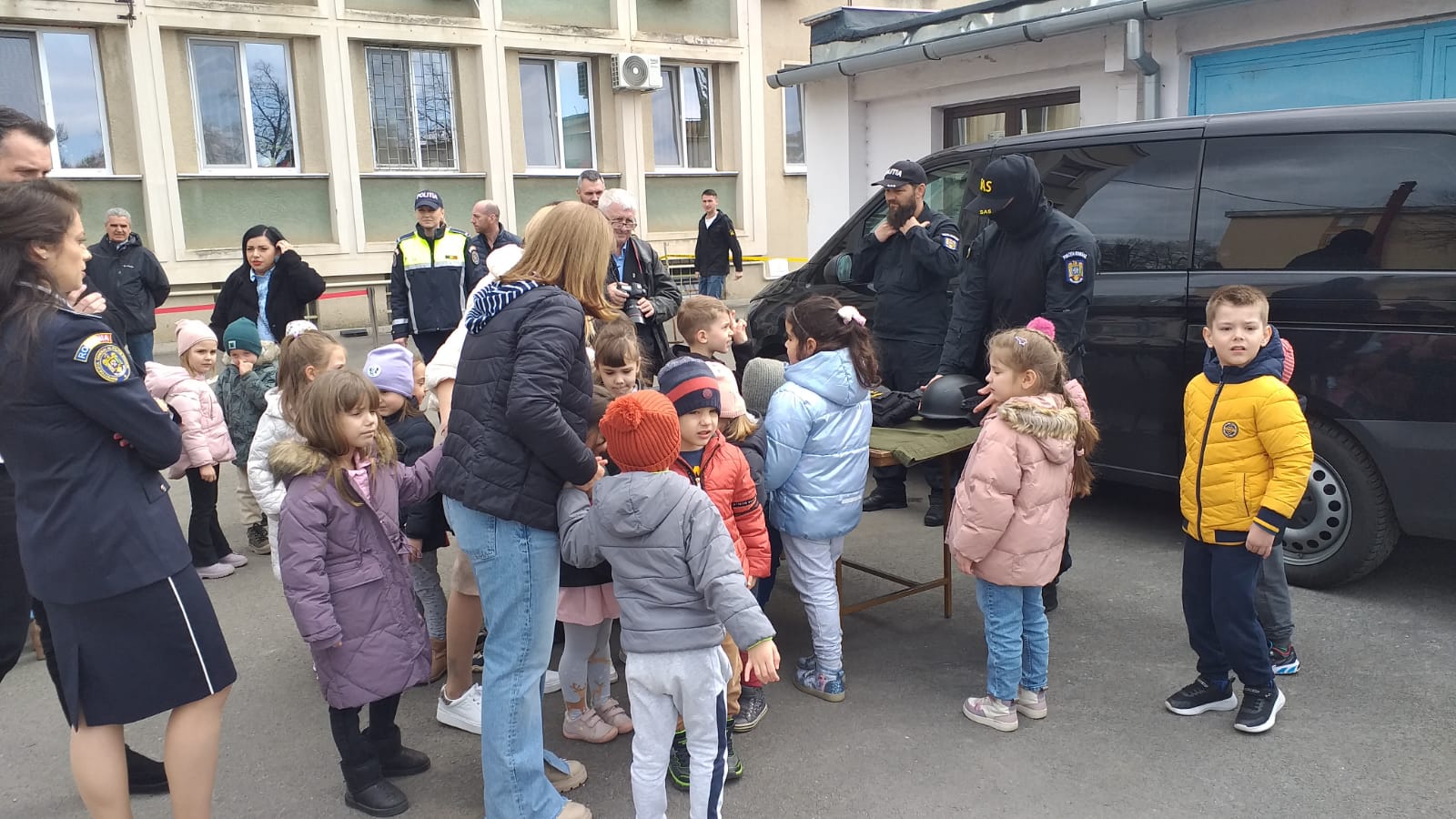 Timișorenii, în mare parte copii, au avut ocazia să stea de vorbă cu oamenii în uniformă și să vadă tehnica din dotarea Poliției Timiș.