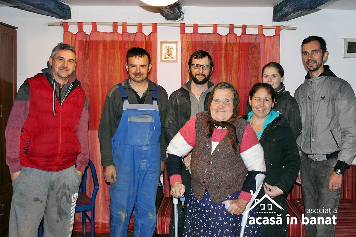 Tanti Lenunța din Ersig va petrece iarna în casa refăcută. Voluntarii Acasă în Banat au finalizat lucrările în ciuda vremii potrivnice