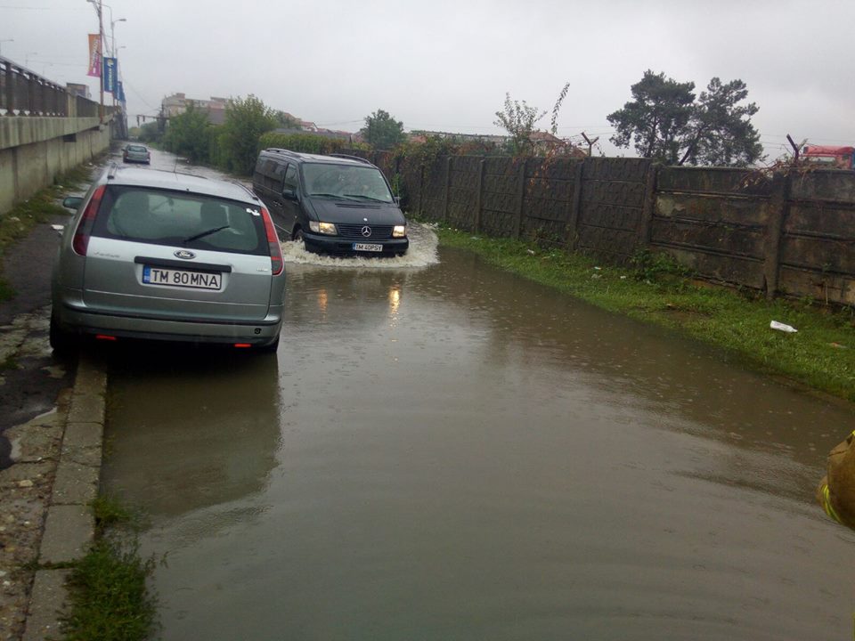 Timișoara, după o ploaie puternică. Mașină blocată în apă, străzi și subsoluri inundate