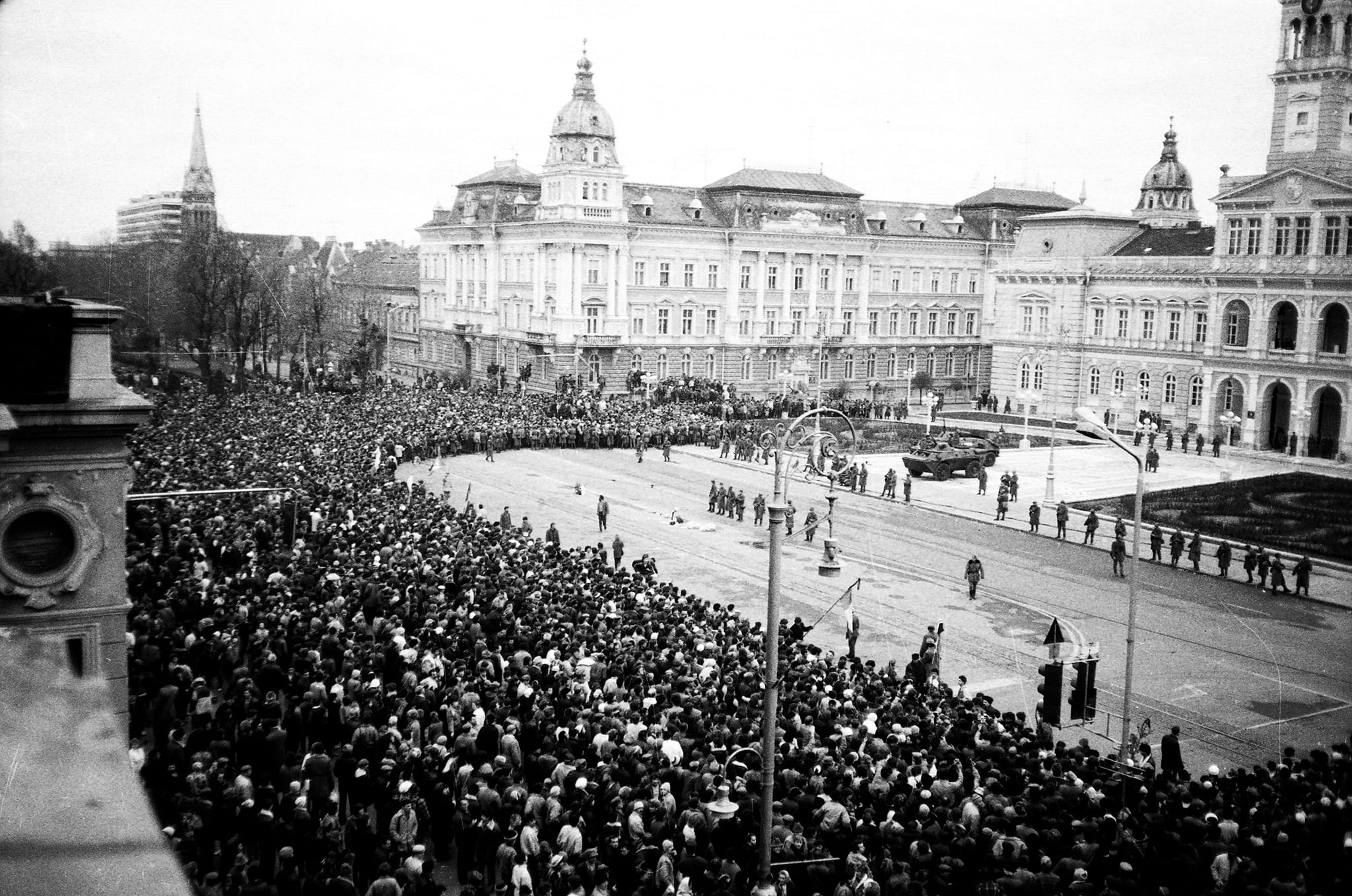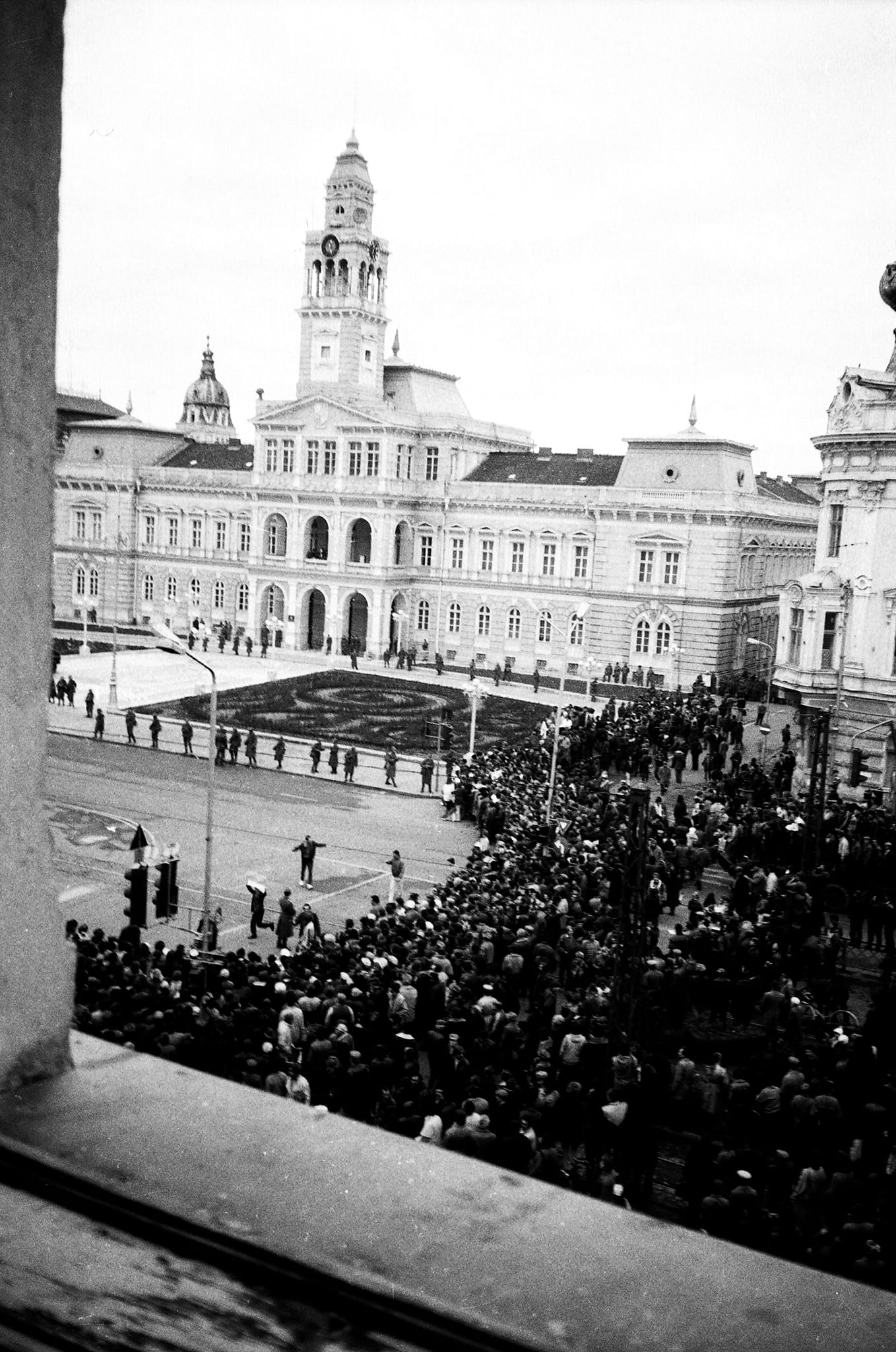 “Eram acasă, eu sunt actor și, la teatru, programul nostru diferit de al întreprinderilor. Un vecin a intrat în bloc alb la față și a zis <Se trage>. Eu nu am vrut să ies în evidență. Un om mi-a spus la un moment dat <Vali, tu știi să vorbești, vorbește>. Și i-am organizat pe oameni”, își amintește liderul revoluției din Arad, Valentin Voicilă.