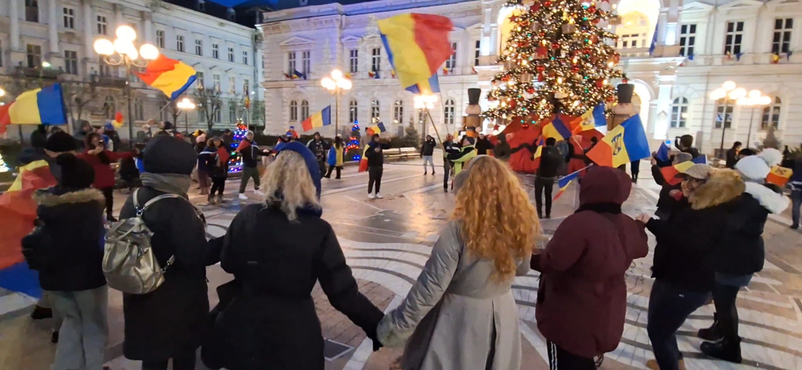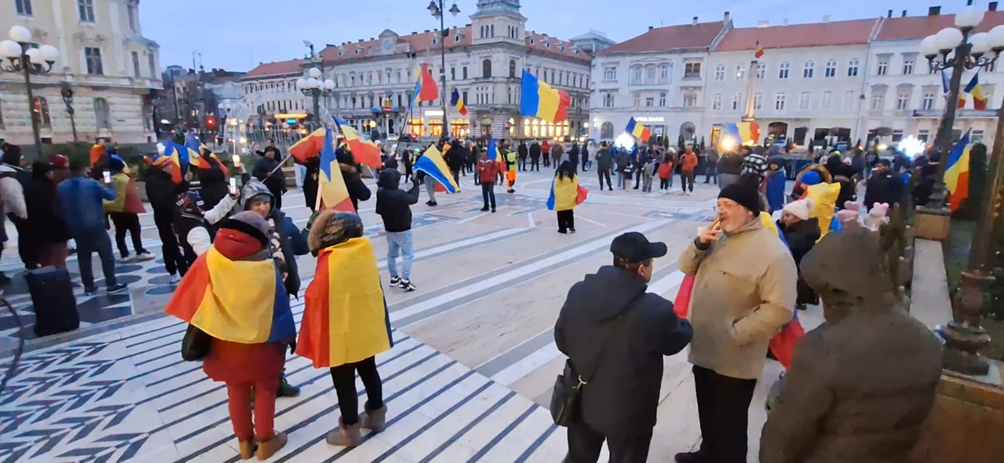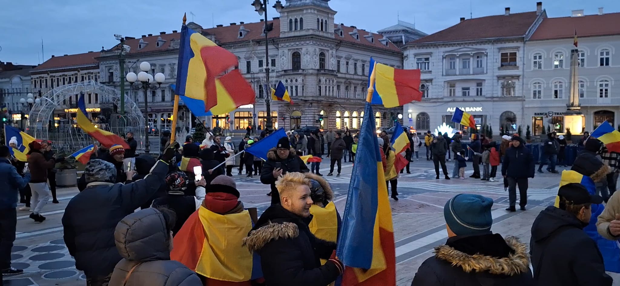 Sâmbătă seara, aproximativ 40 de persoane, unele cu pancarte, altele cu steagul României, au manifestat în faţa Primăriei din Arad arătându-şi unii nemulţumirea faţă de restrcţiile financiare impuse de Guvern, alţii faţă de anularea turului II al alegerilor prezidenţiale.