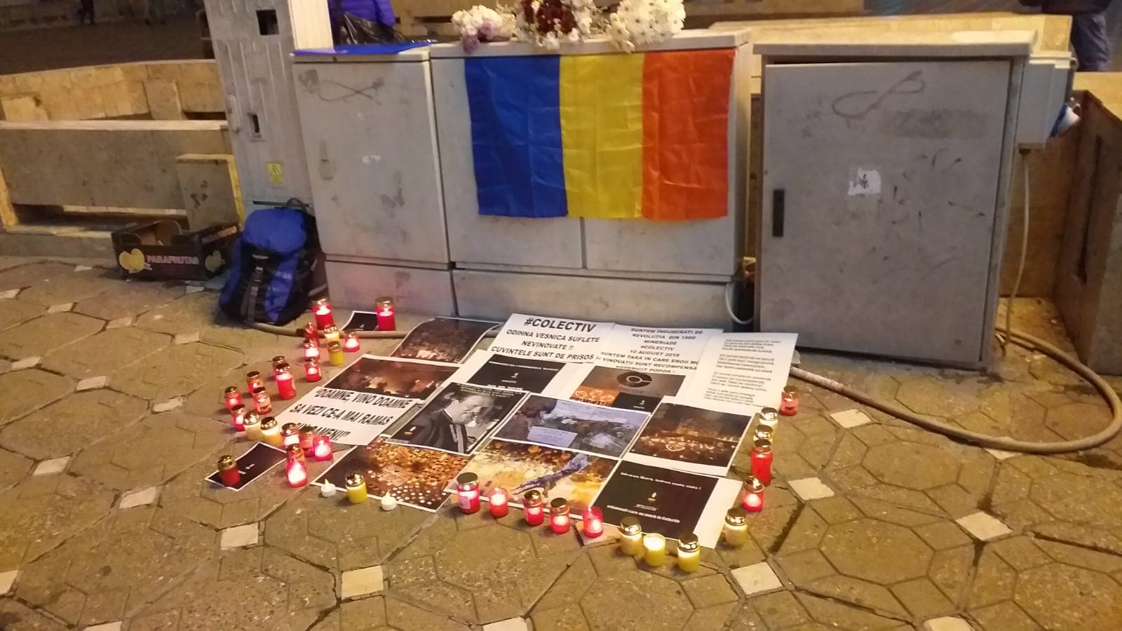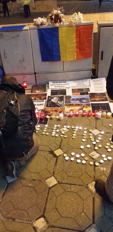 Oamenii au aprins lumânări în centrul Timișoarei și au scris din lumânări cuvântul „Colectiv” pe caldarâm.