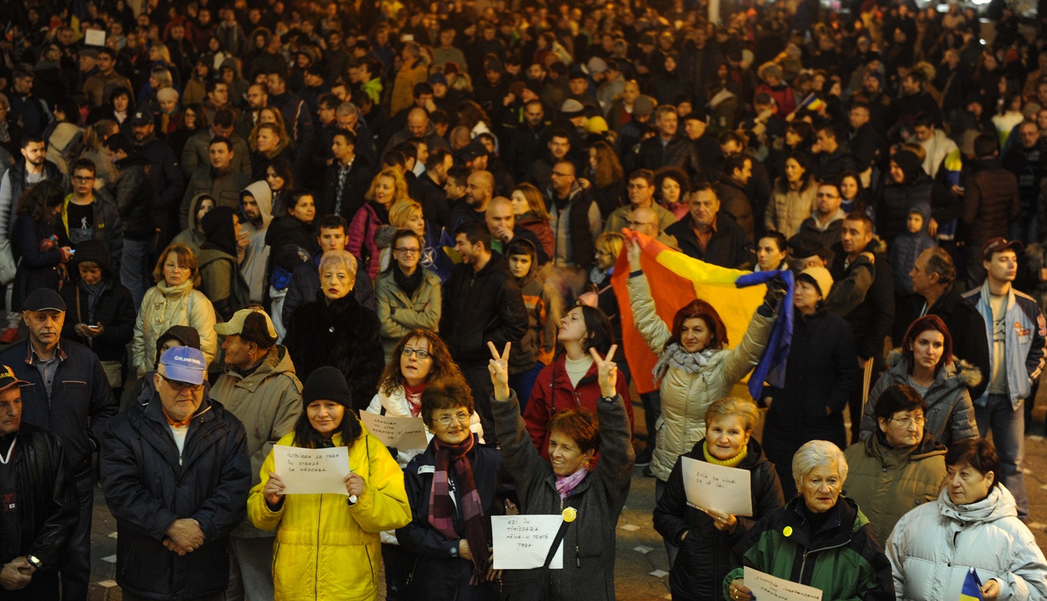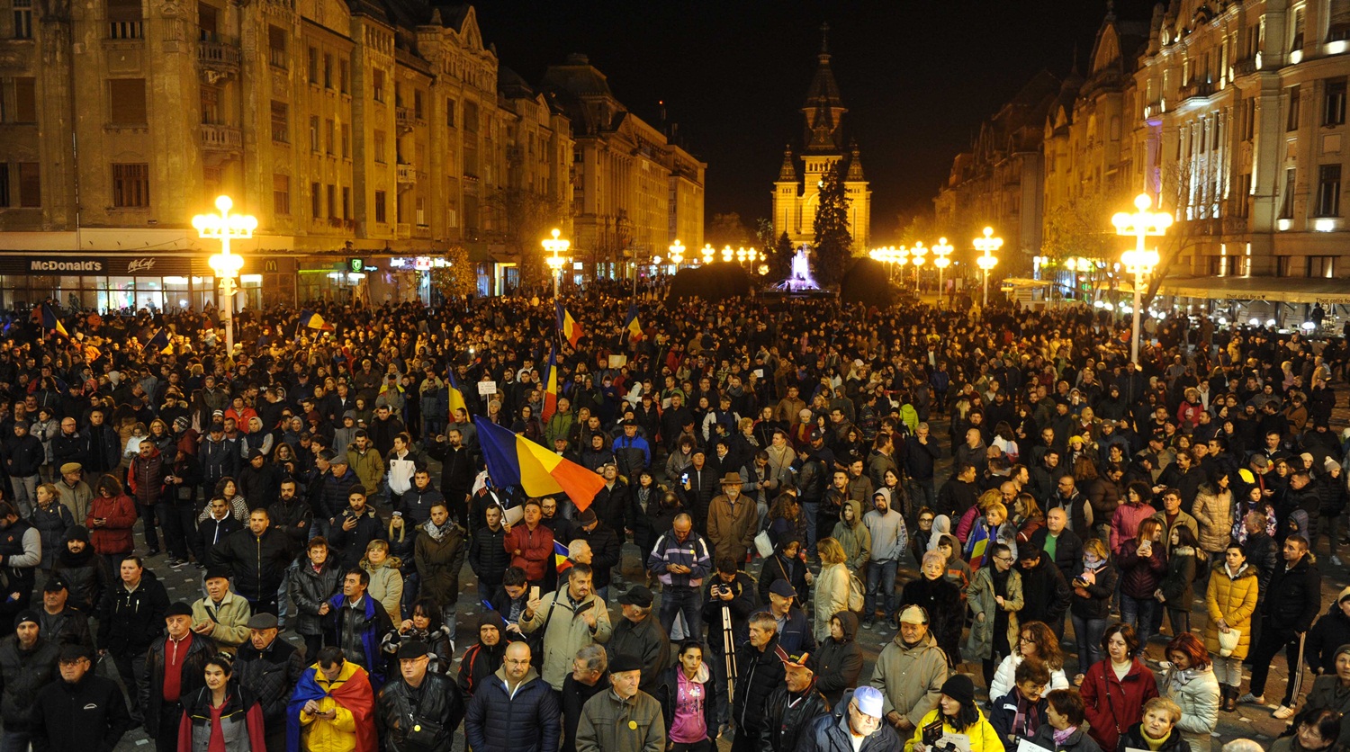 Protestul a început la ora 19:00 când în centrul Timișoarei s-au adunat circa 500 de oameni. În aproximativ jumătate de oră, numărul protestatarilor a crescut la peste 2.000.
