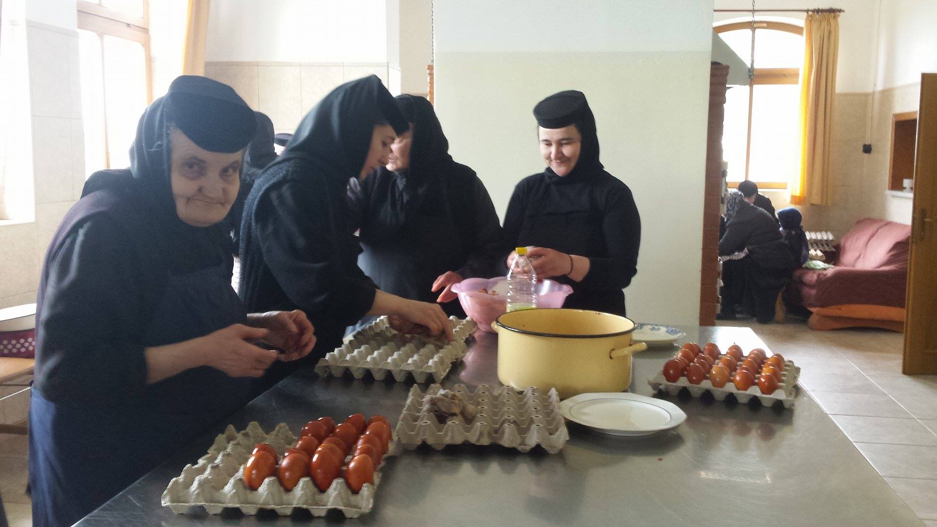 Maicile folosesc o metodă tradiţională de vopsire, fără chimicale, cu coji de ceapă roşie – explică Maica Tecla.