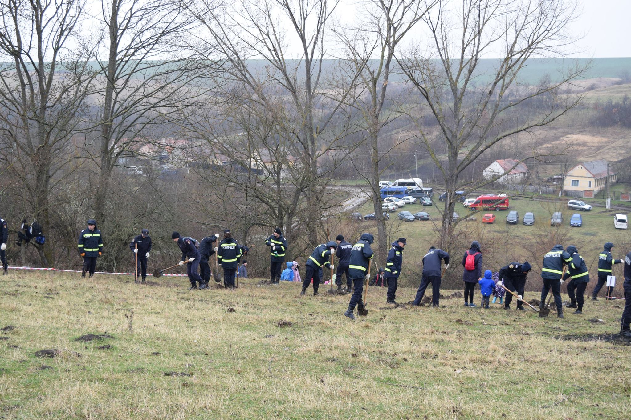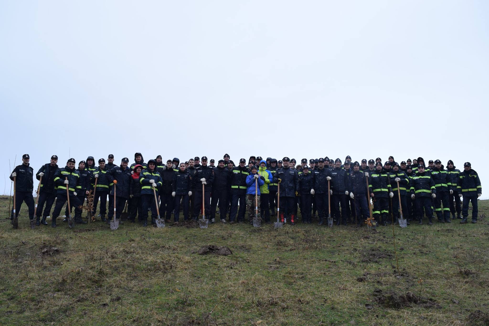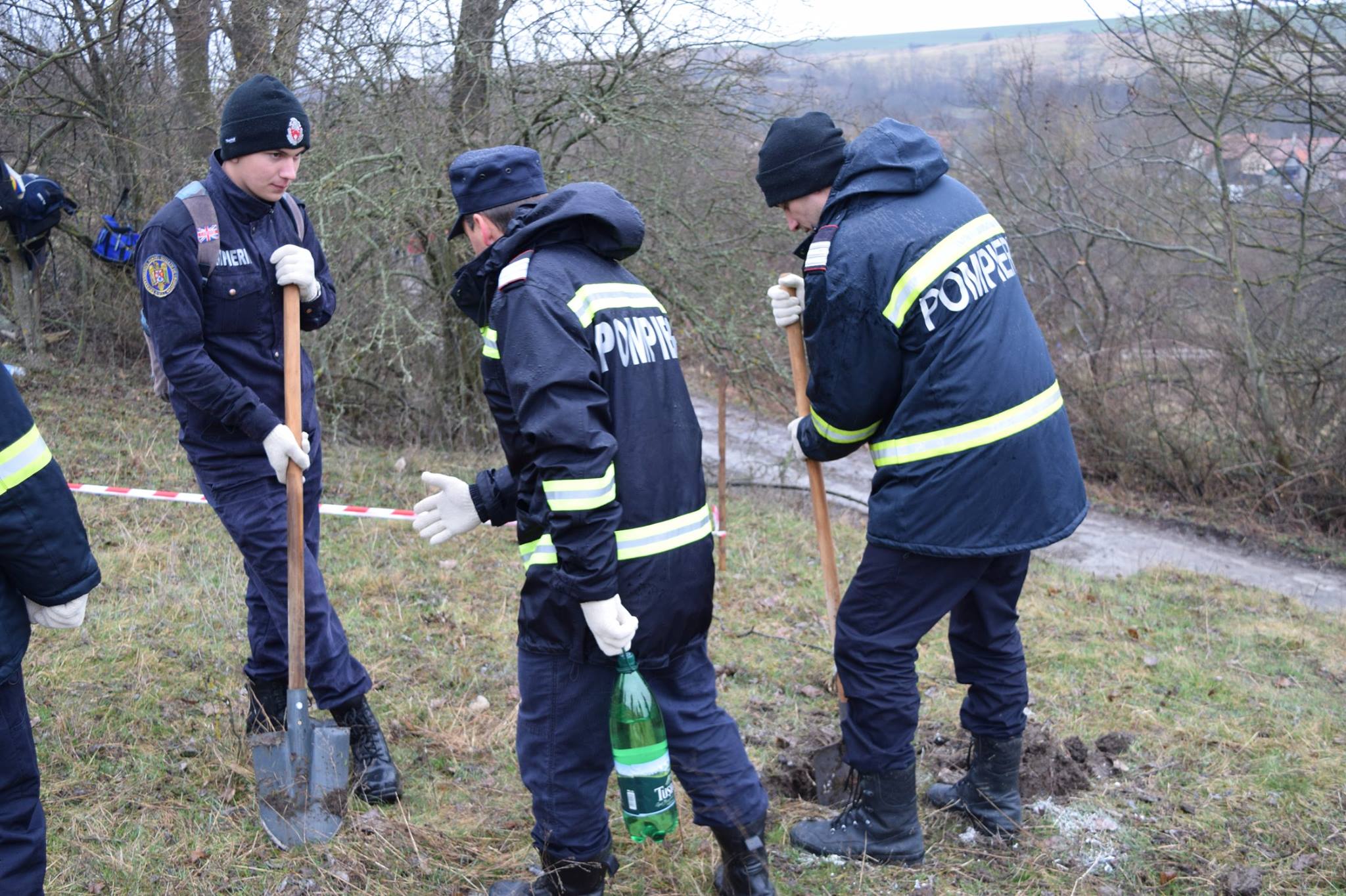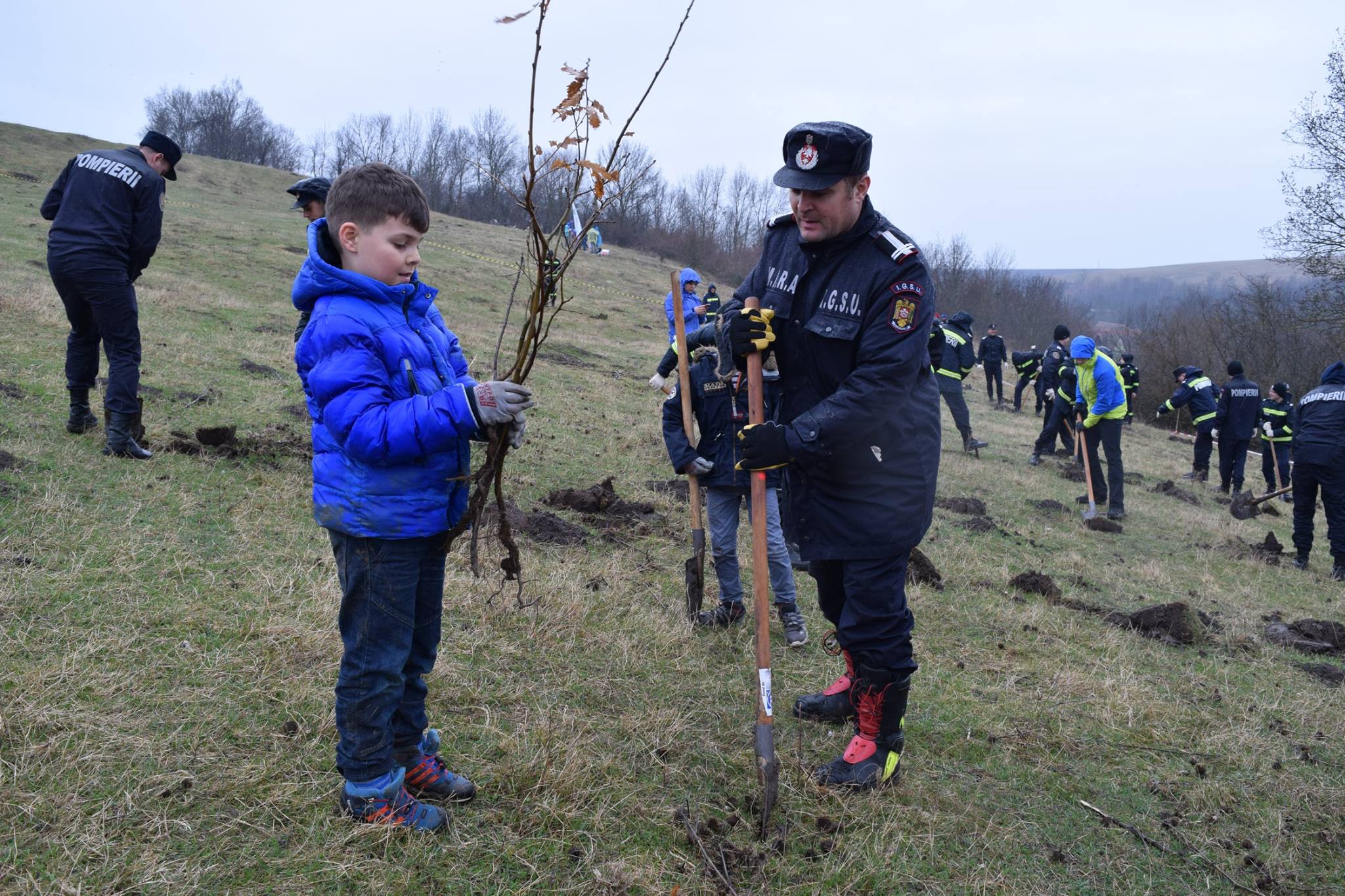 Zeci de pompieri și familiile lor au plantat pomișori în apropiere de Timișoara