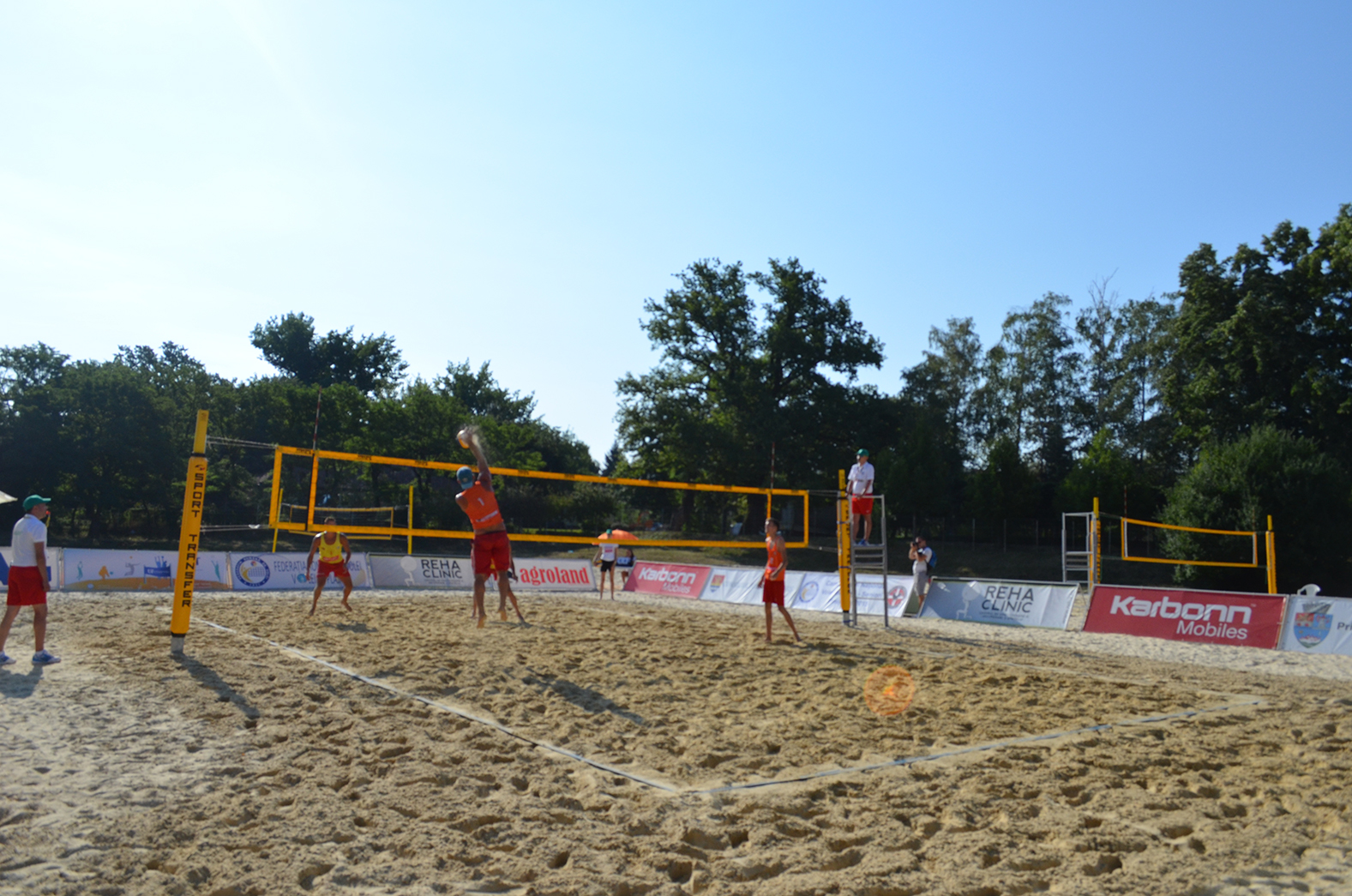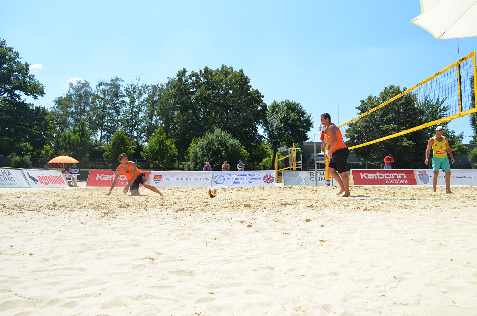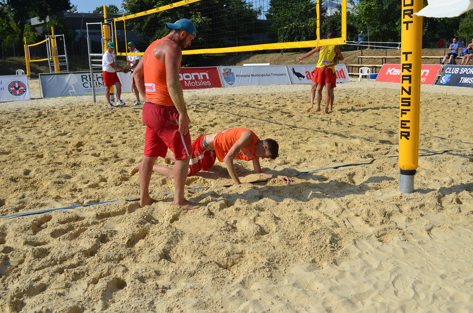 Marius Mascovits, campion en-titre, şi Robert Vârlan (ProVolei Arad/CSU Reşiţa) au fost primii sportivi din zonă care au luptat pentru o medalie. Nu a fost cu noroc, pentru că perechea Marius Drgăhici/Cornel Miron s-a impus cu 2-0 (18, 22), în finala mică de pe tabloul masculin.