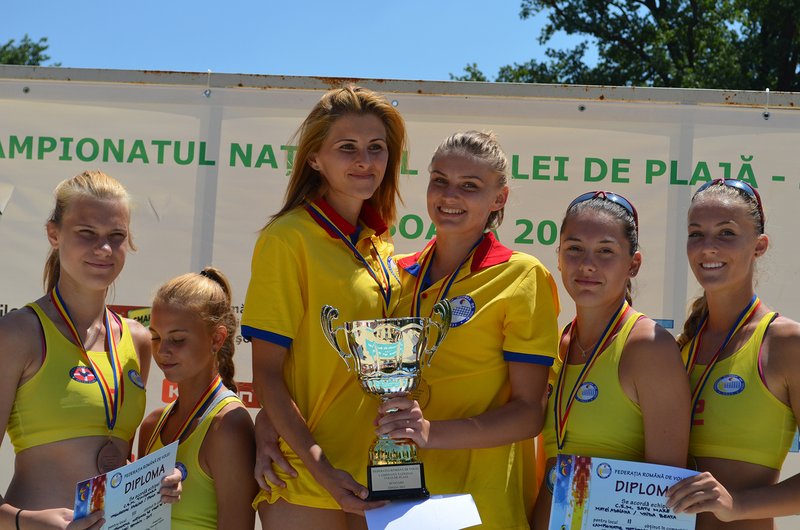 Apoi, Adriana Melniciuc şi Sorina Buz (CSU Reşiţa) şi-au confirmat statutul de favorite şi nu le-au dat nici o şansă sătmărencelor Adriana Matei şi Beata Vaida, după 2-0 (12, 15), în finala mare din competiţia feminină. La final, cele două campioane şi-au manifestat bucuria pentru titlul câştigat.